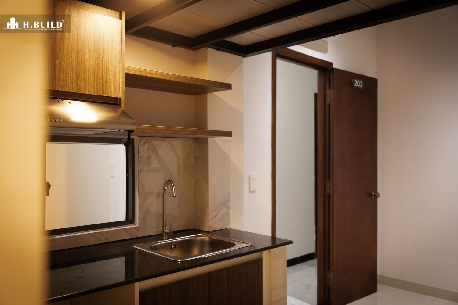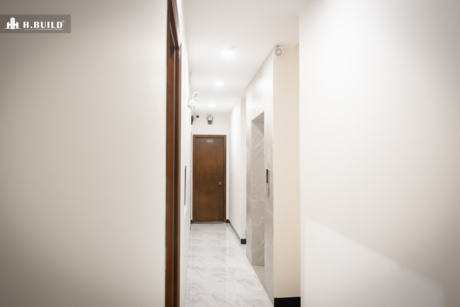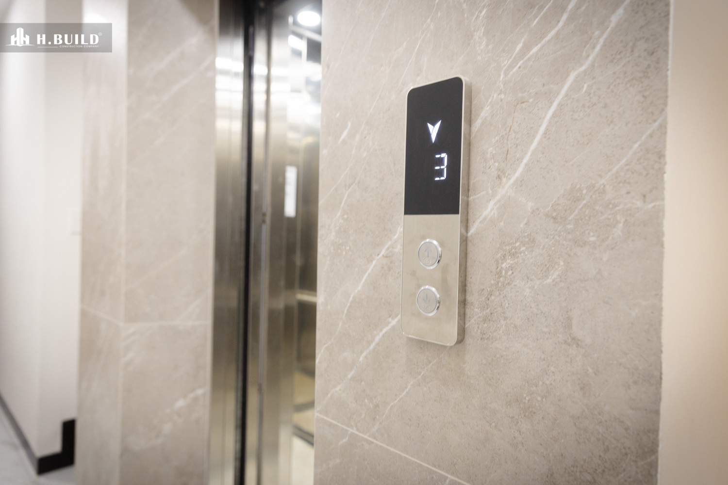Tầng trệt được ốp đá Marble toàn diện – giải pháp đắt giá giúp công trình luôn sạch sẽ, bề thế và khắc phục nhược điểm dễ bám bẩn của nhà hẻm.