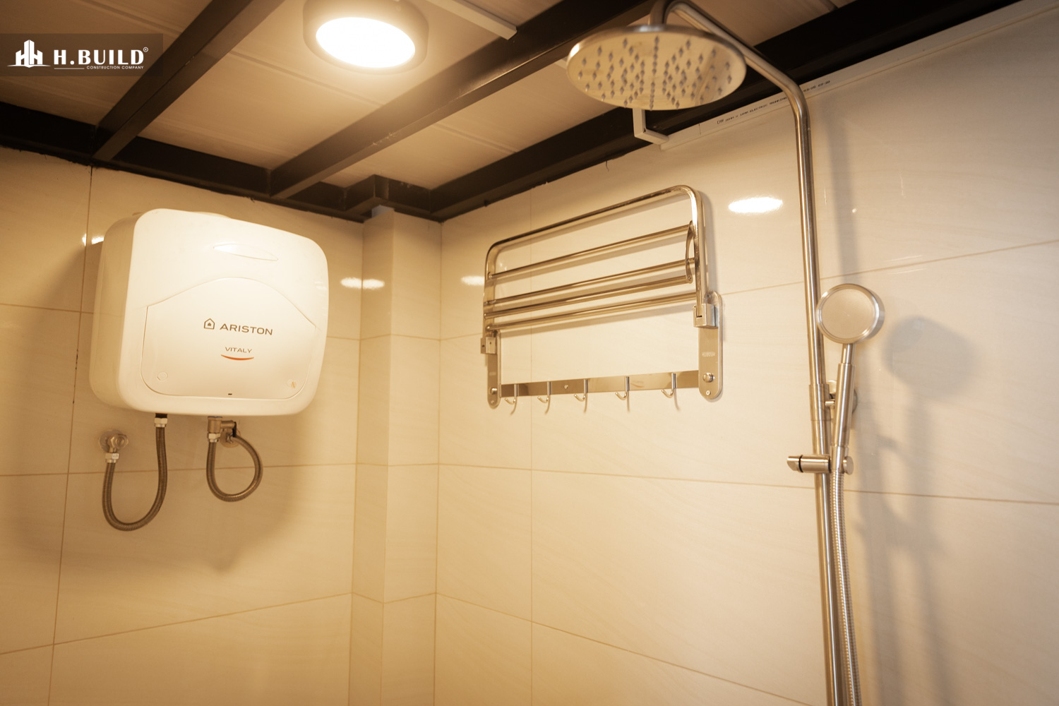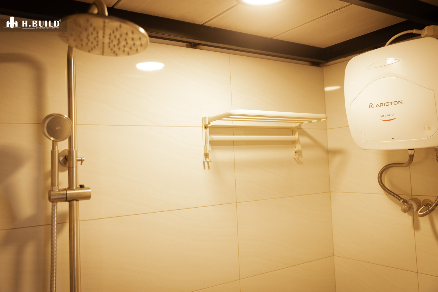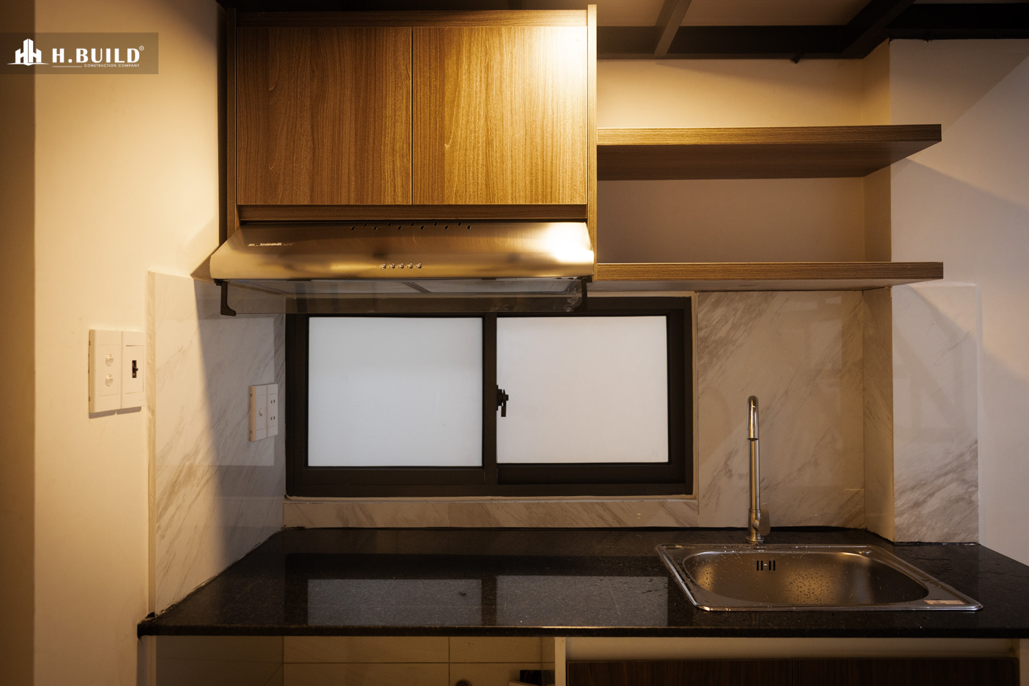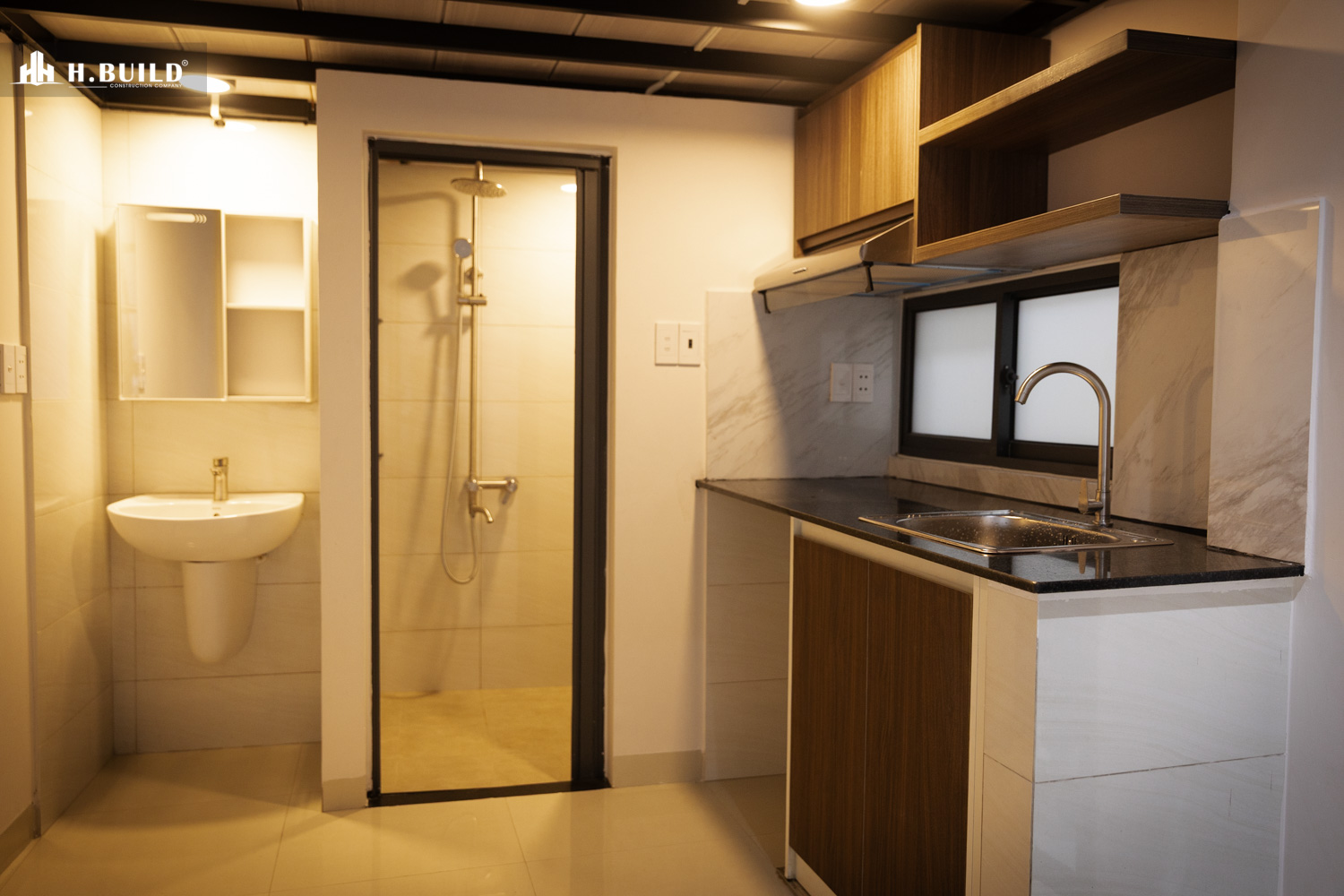 Tầng trệt được ốp đá Marble toàn diện – một giải pháp đắt giá giúp công trình luôn sạch sẽ, bề thế và khắc phục nhược điểm dễ bám bẩn của nhà hẻm.