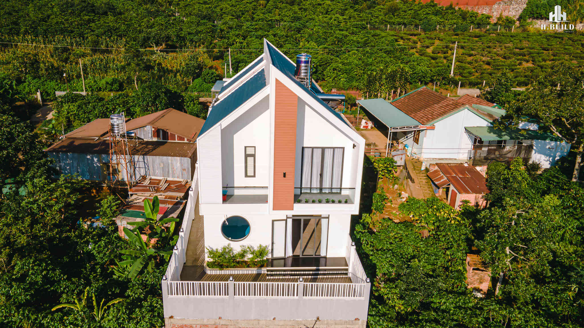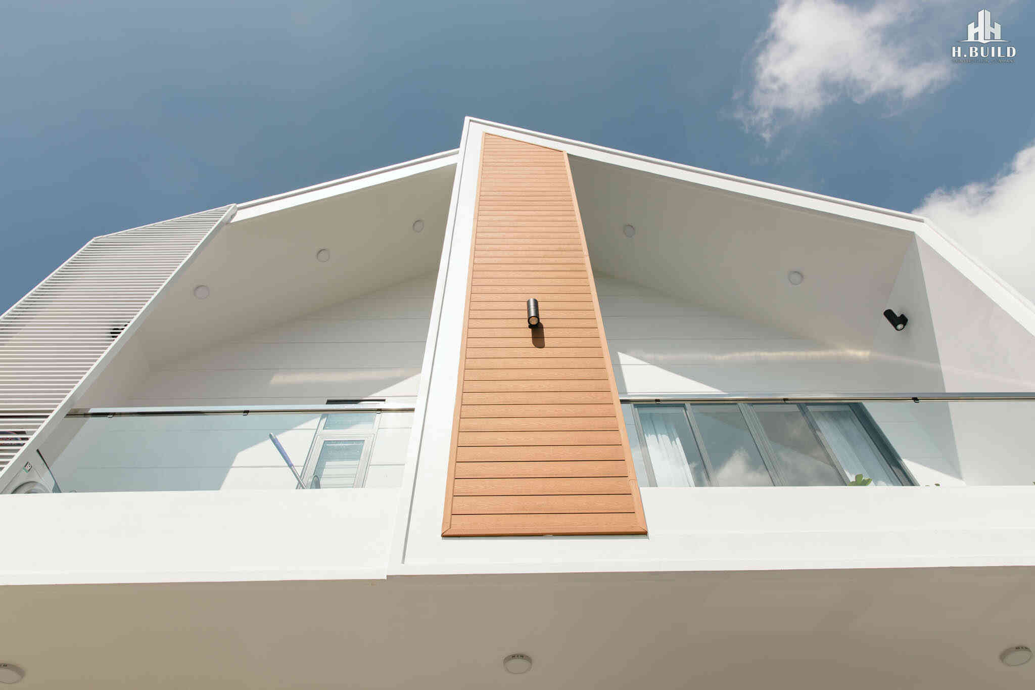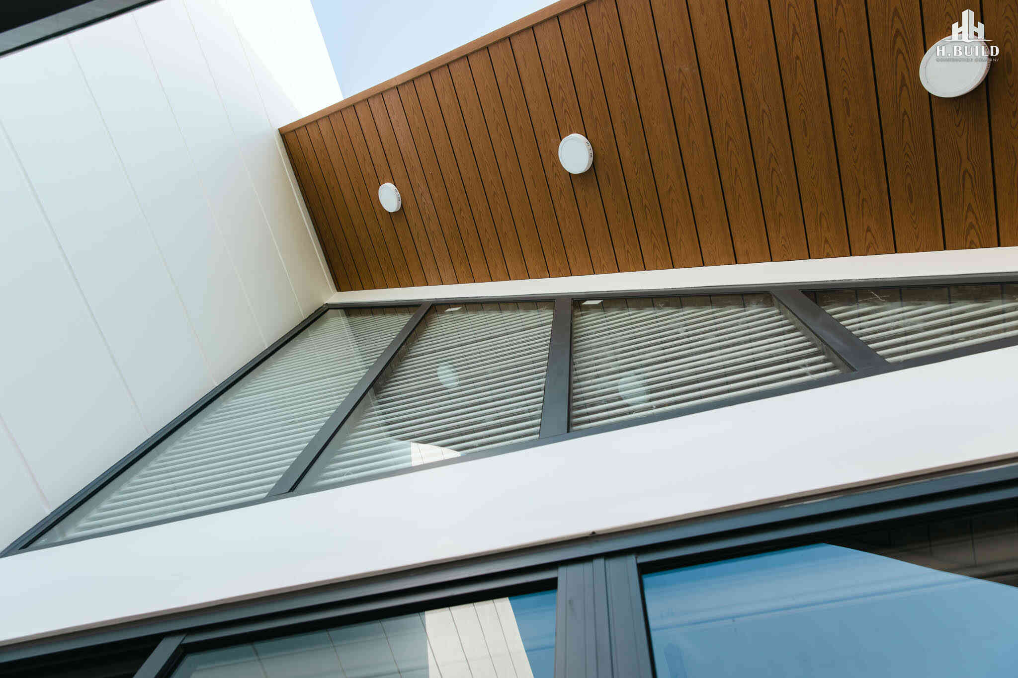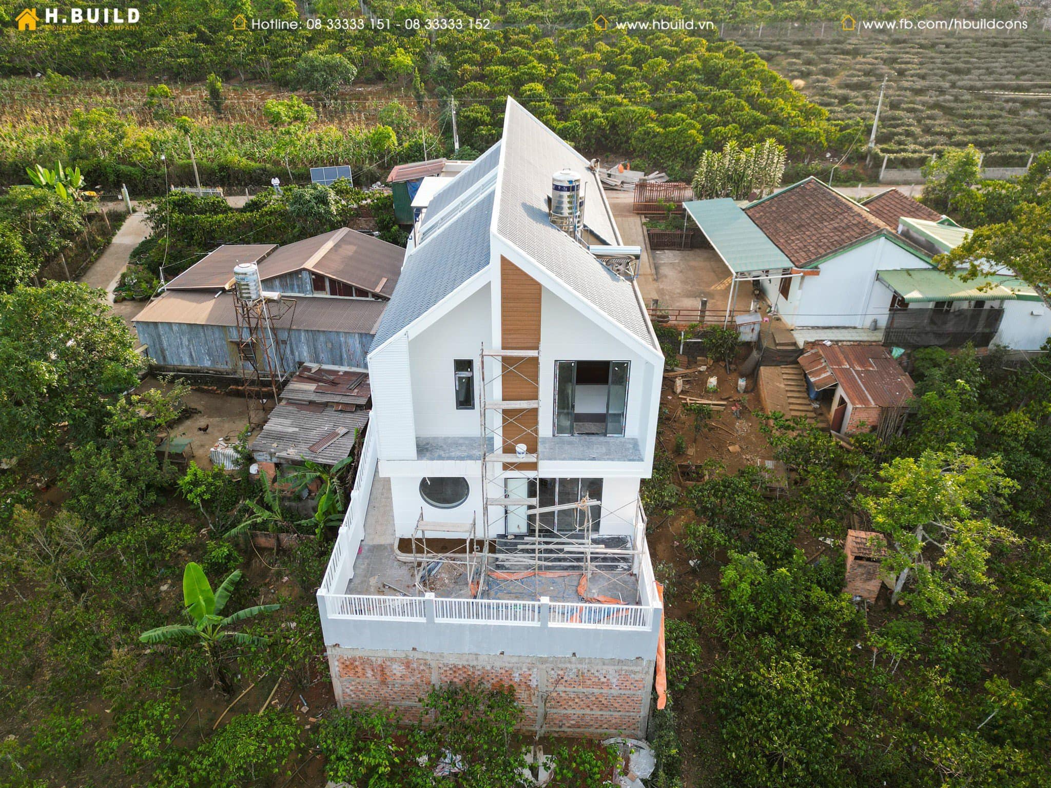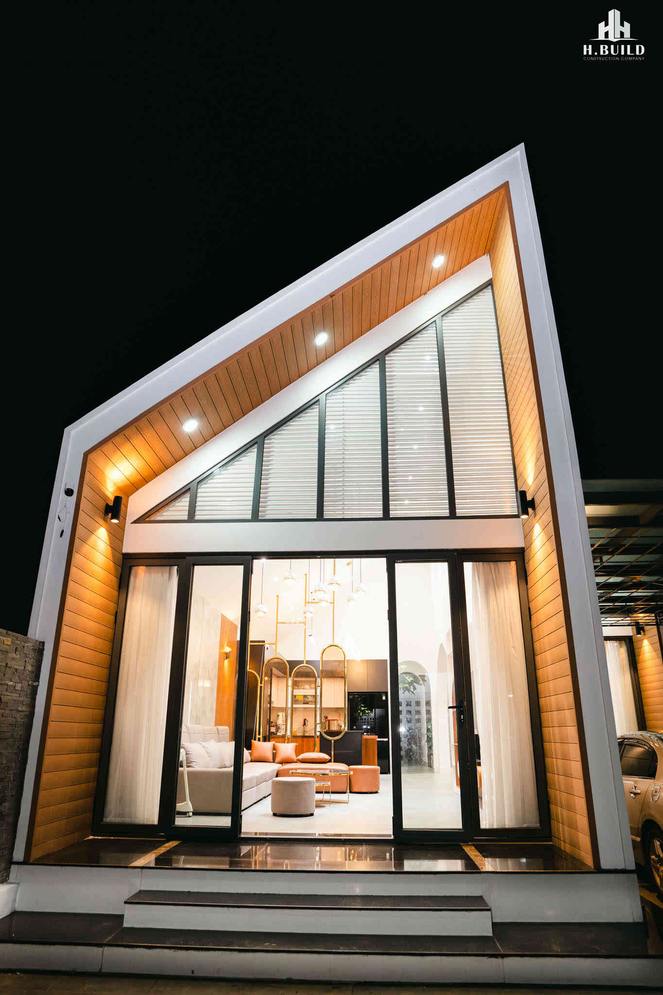 Thích ứng tuyệt đối với những cơn mưa phố núi, công trình sở hữu hệ mái dốc lệch vút cao mạnh mẽ, kết hợp khe lấy sáng để đưa hơi ấm mặt trời vào sâu bên trong. Sự tương phản giữa tường trắng tinh khôi và trần ốp gỗ tạo nên một lớp vỏ cân bằng: vừa hiện đại, vừa đủ ấm áp để chống lại cái lạnh se sắt bên ngoài.