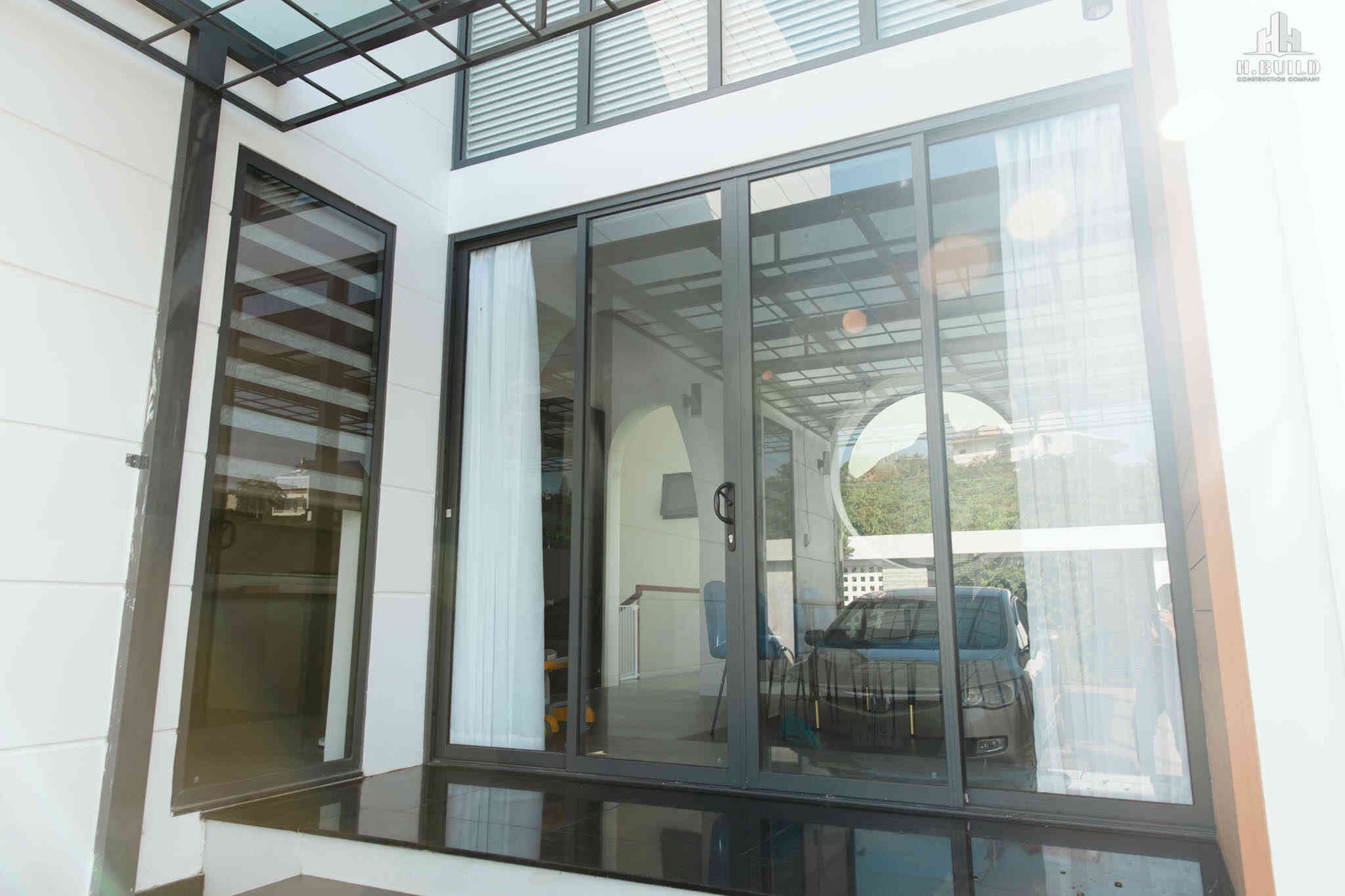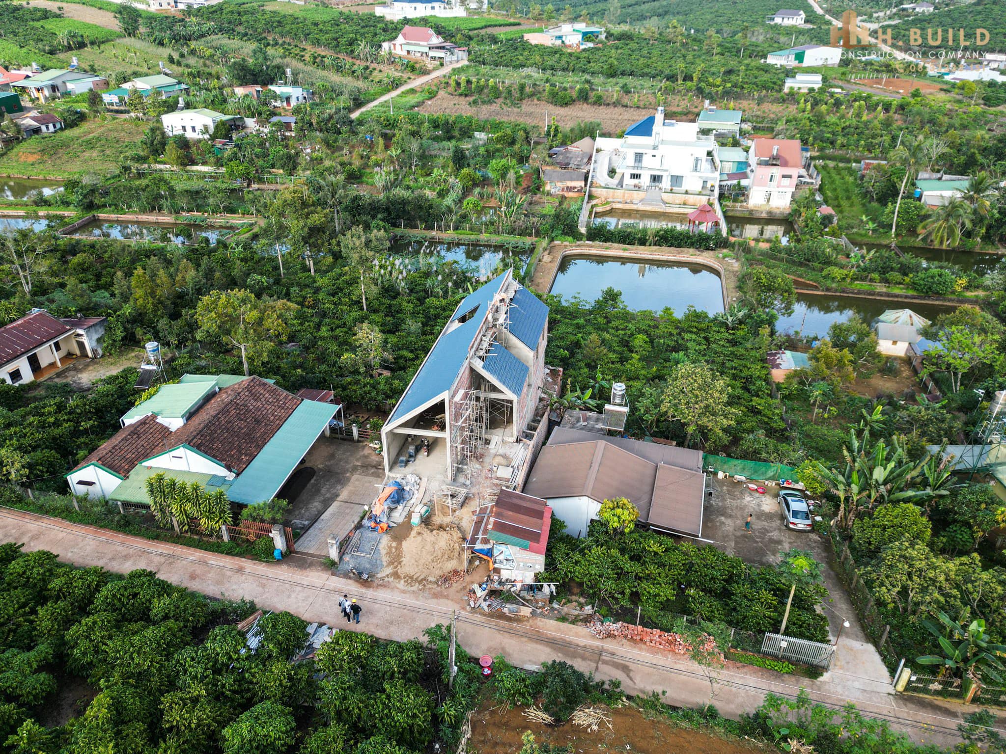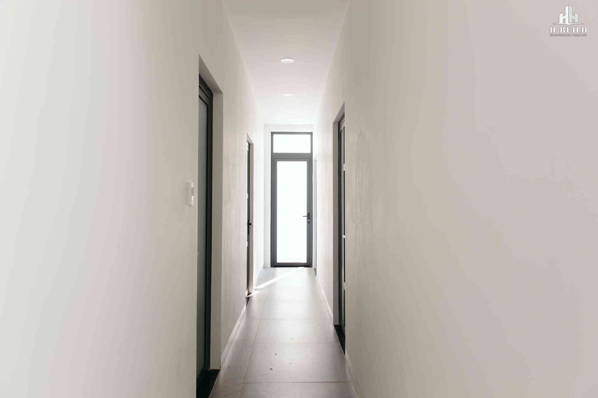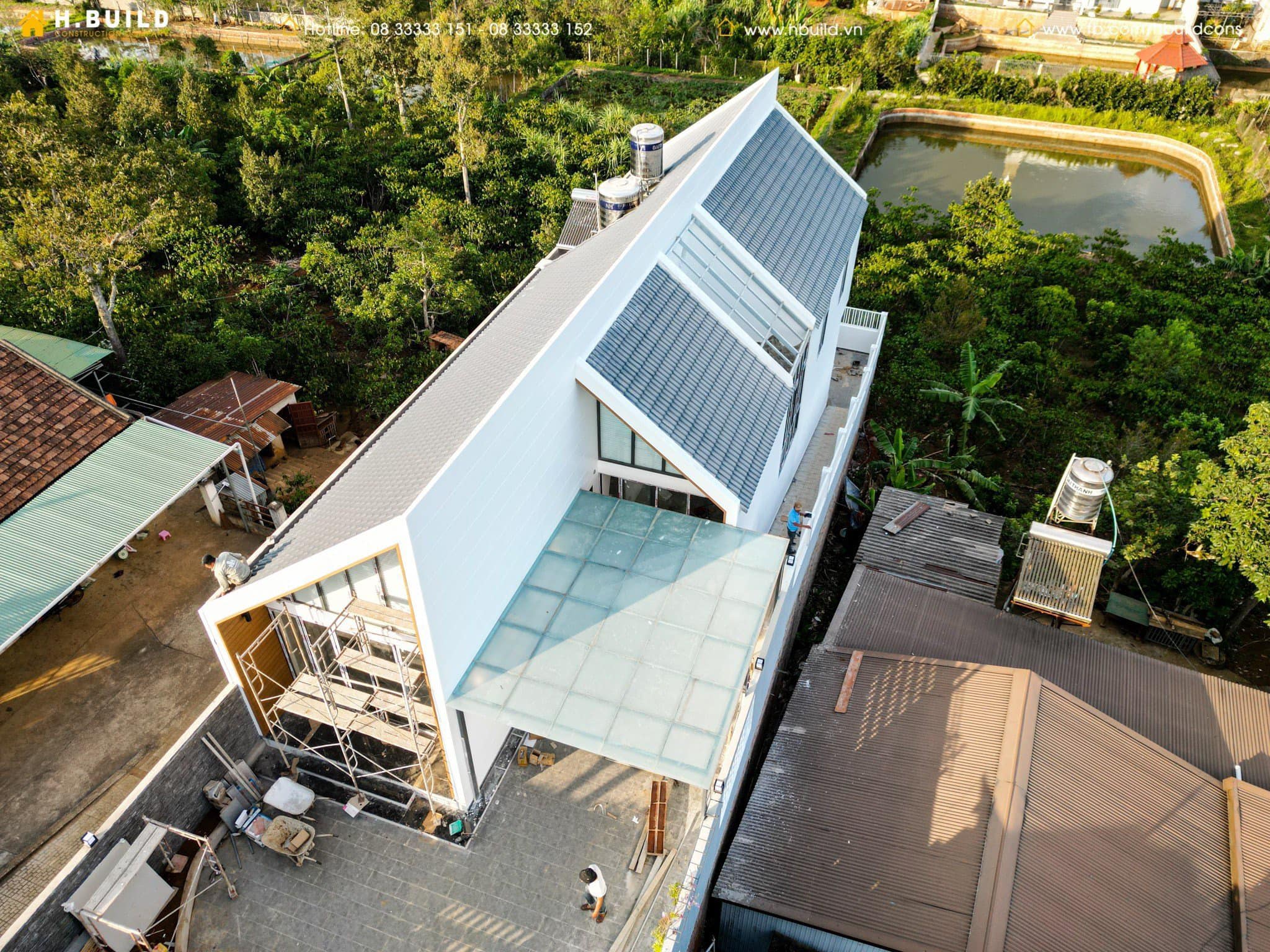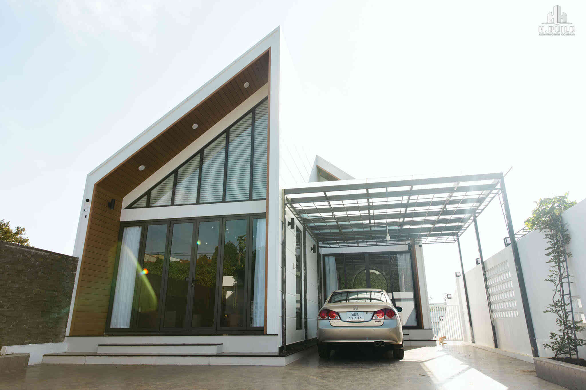 Thích ứng tuyệt đối với những cơn mưa phố núi, công trình sở hữu hệ mái dốc lệch vút cao mạnh mẽ, kết hợp khe lấy sáng để đưa hơi ấm mặt trời vào sâu bên trong. Sự tương phản giữa tường trắng tinh khôi và trần ốp gỗ tạo nên một lớp vỏ cân bằng: vừa hiện đại, vừa đủ ấm áp để chống lại cái lạnh se sắt bên ngoài.