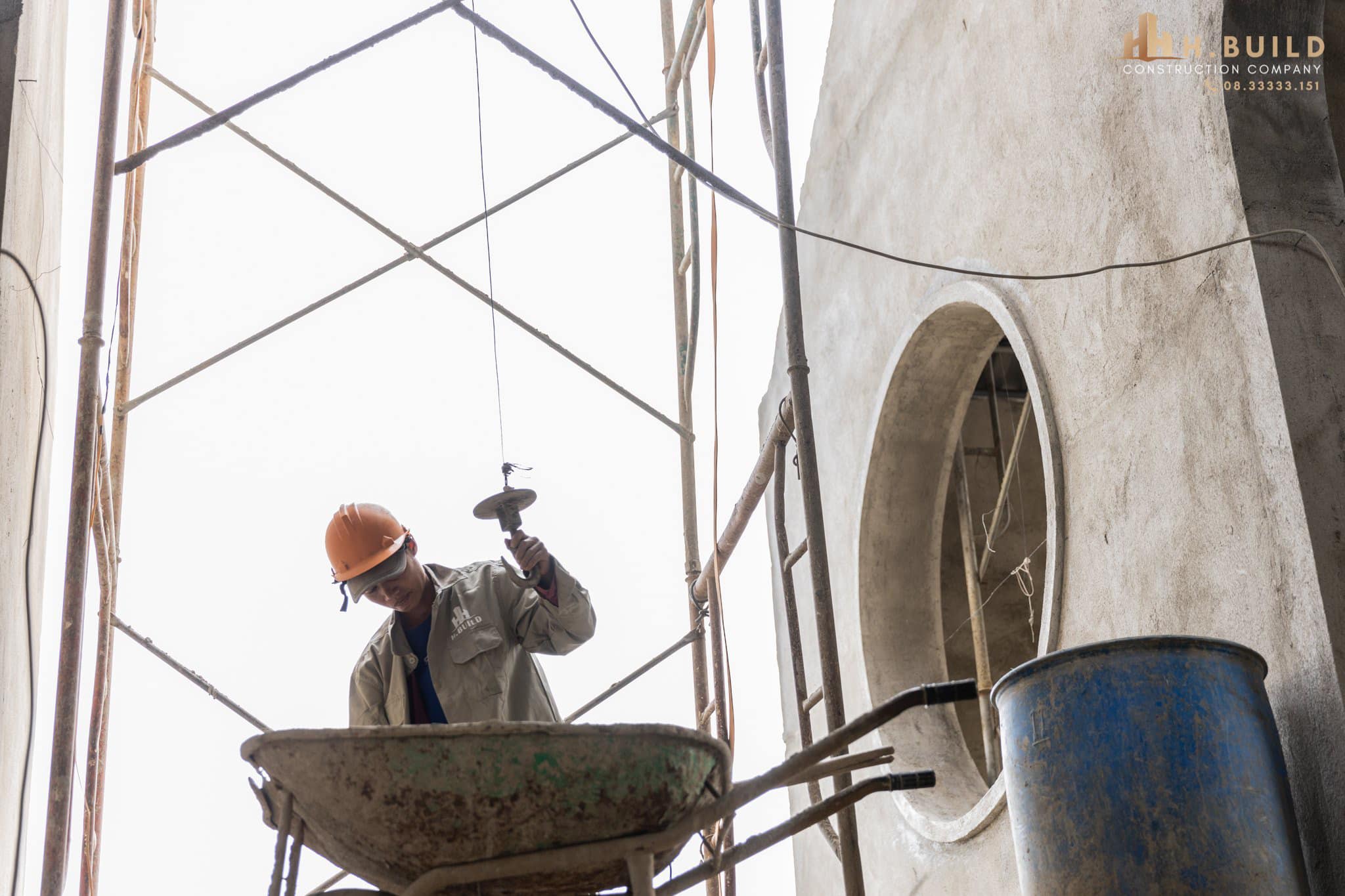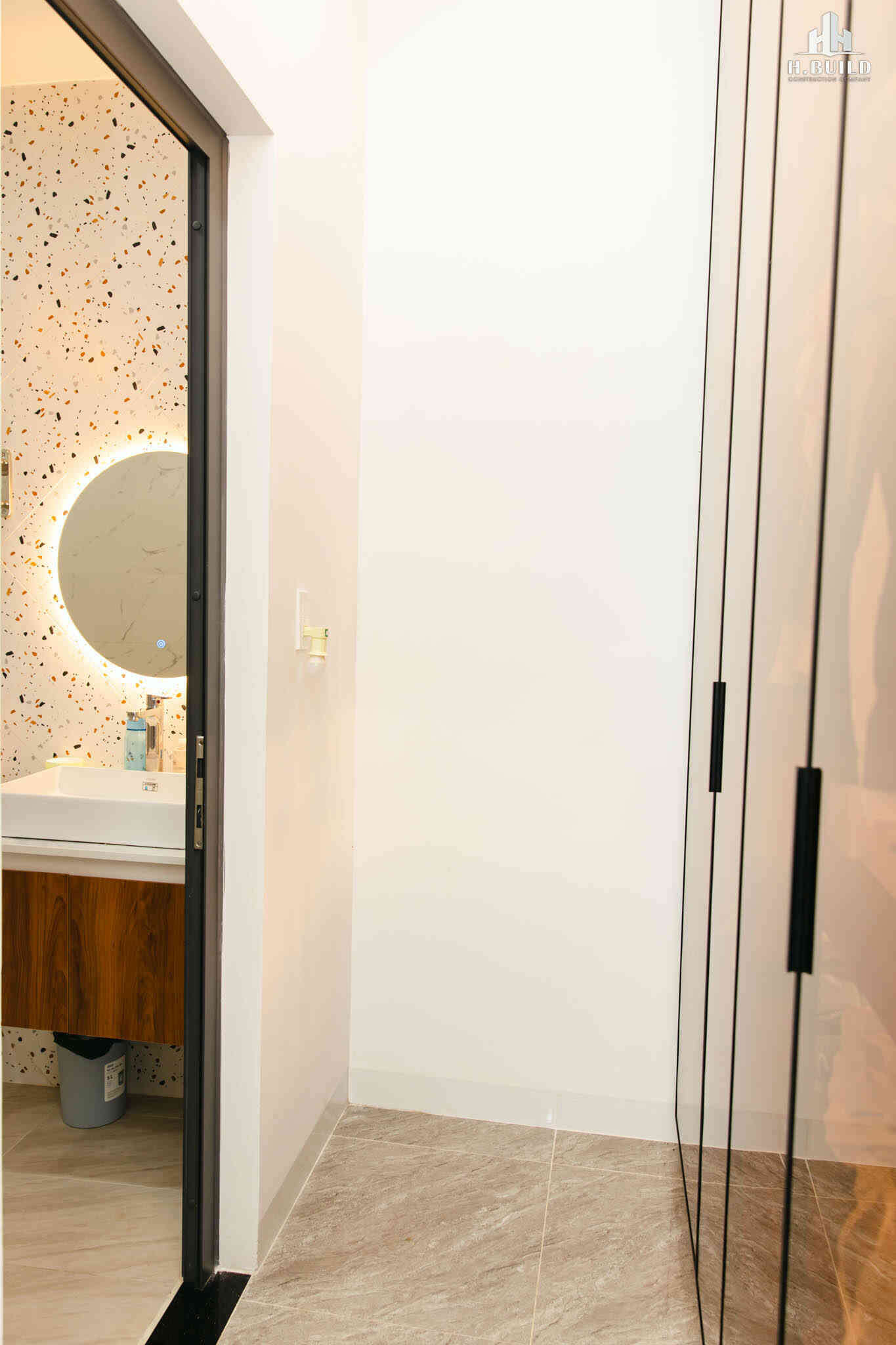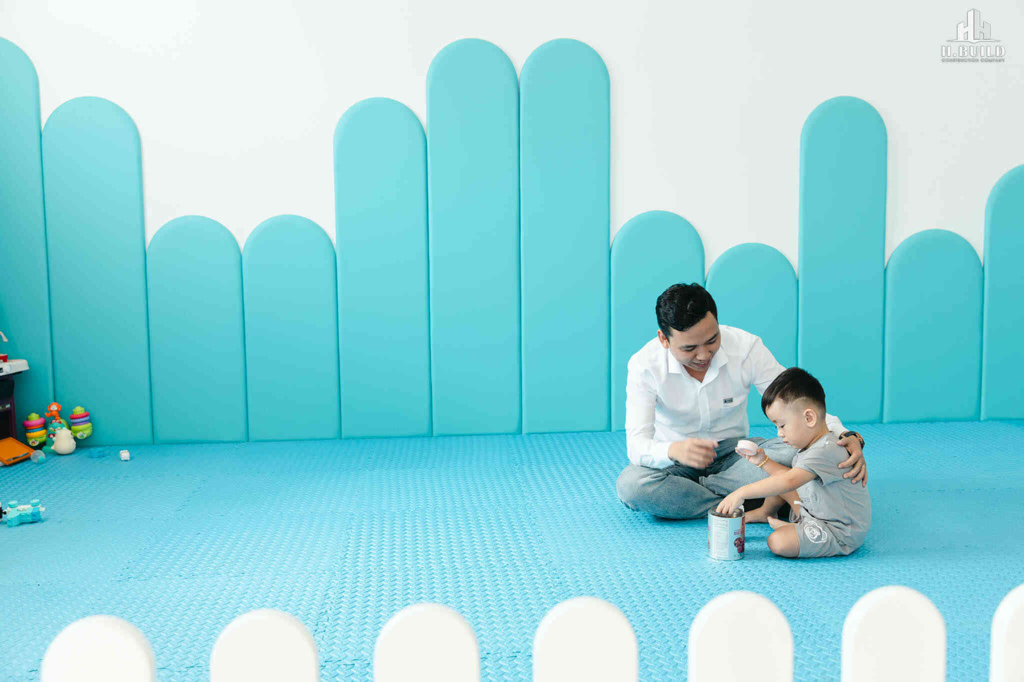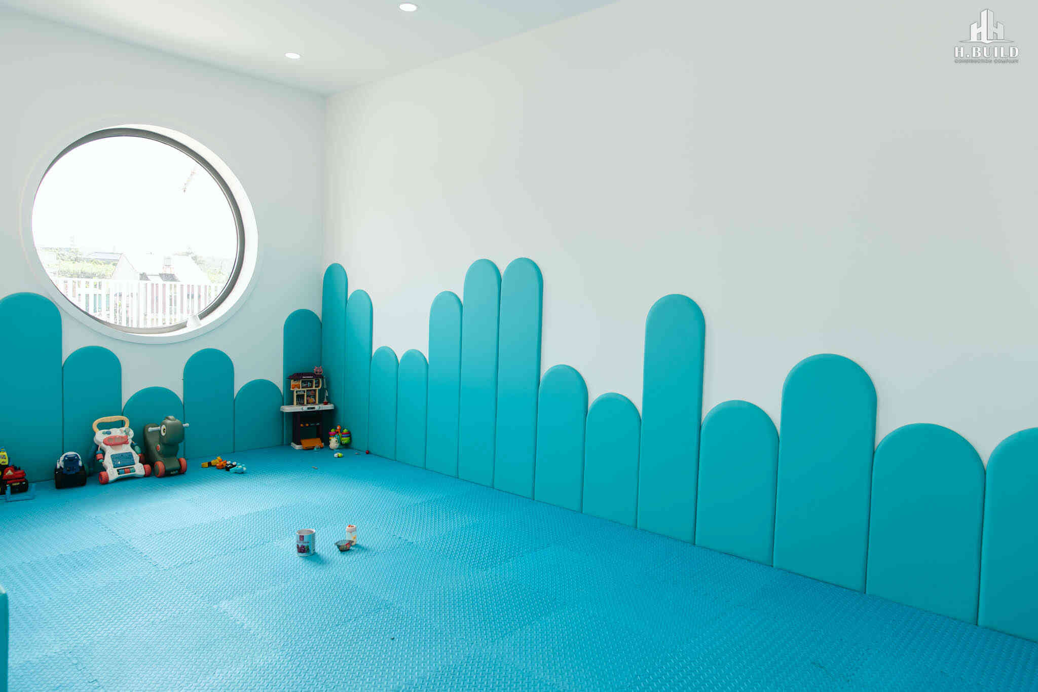 Bên trong là một không gian “Home Resort” đúng nghĩa. Trần thông tầng cao vút, mảng tường hiệu ứng bê tông viền vàng kim loại và những vòm cong mềm mại tạo nên vẻ đẹp sang trọng nhưng đầy phóng khoáng.