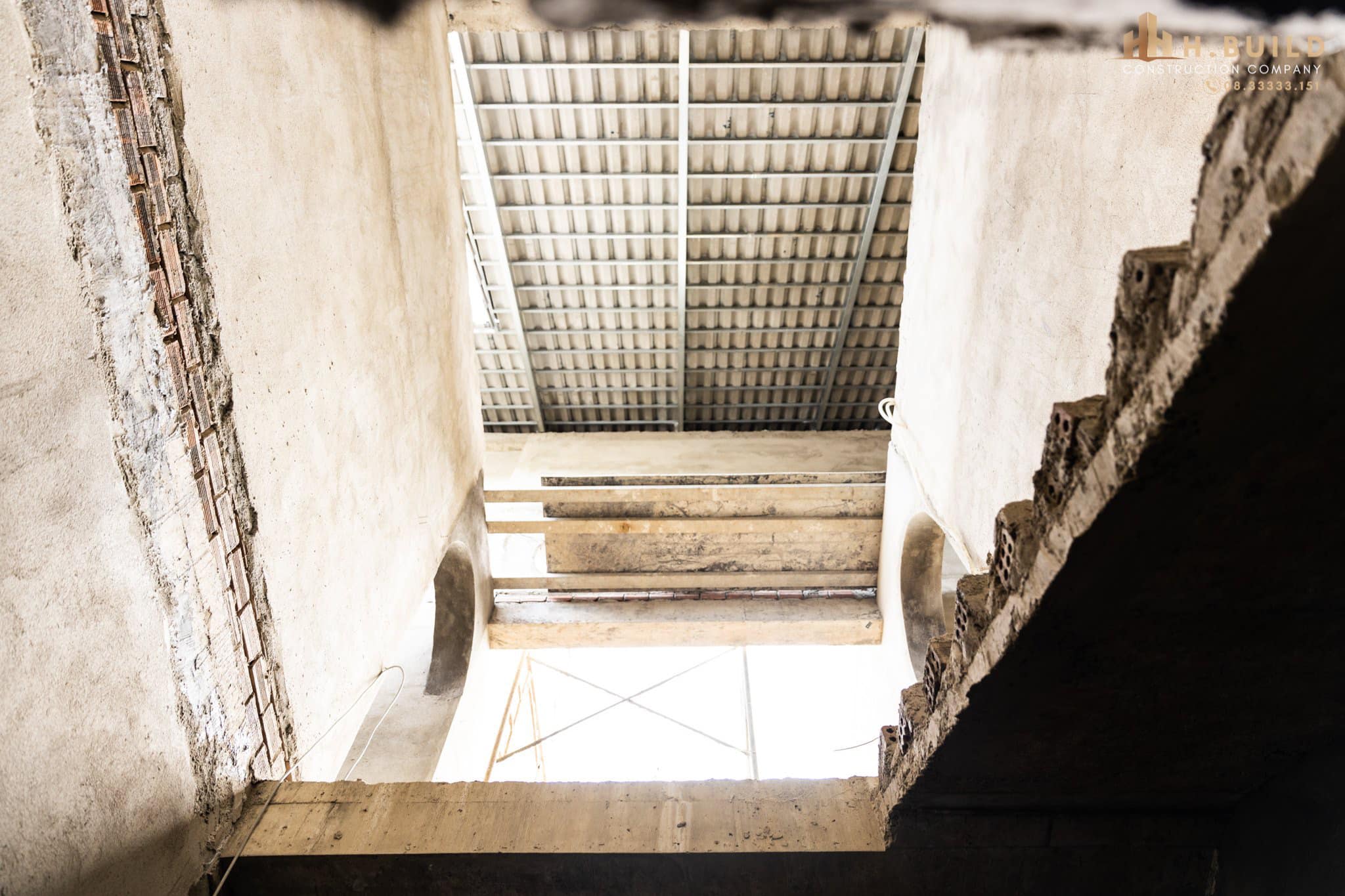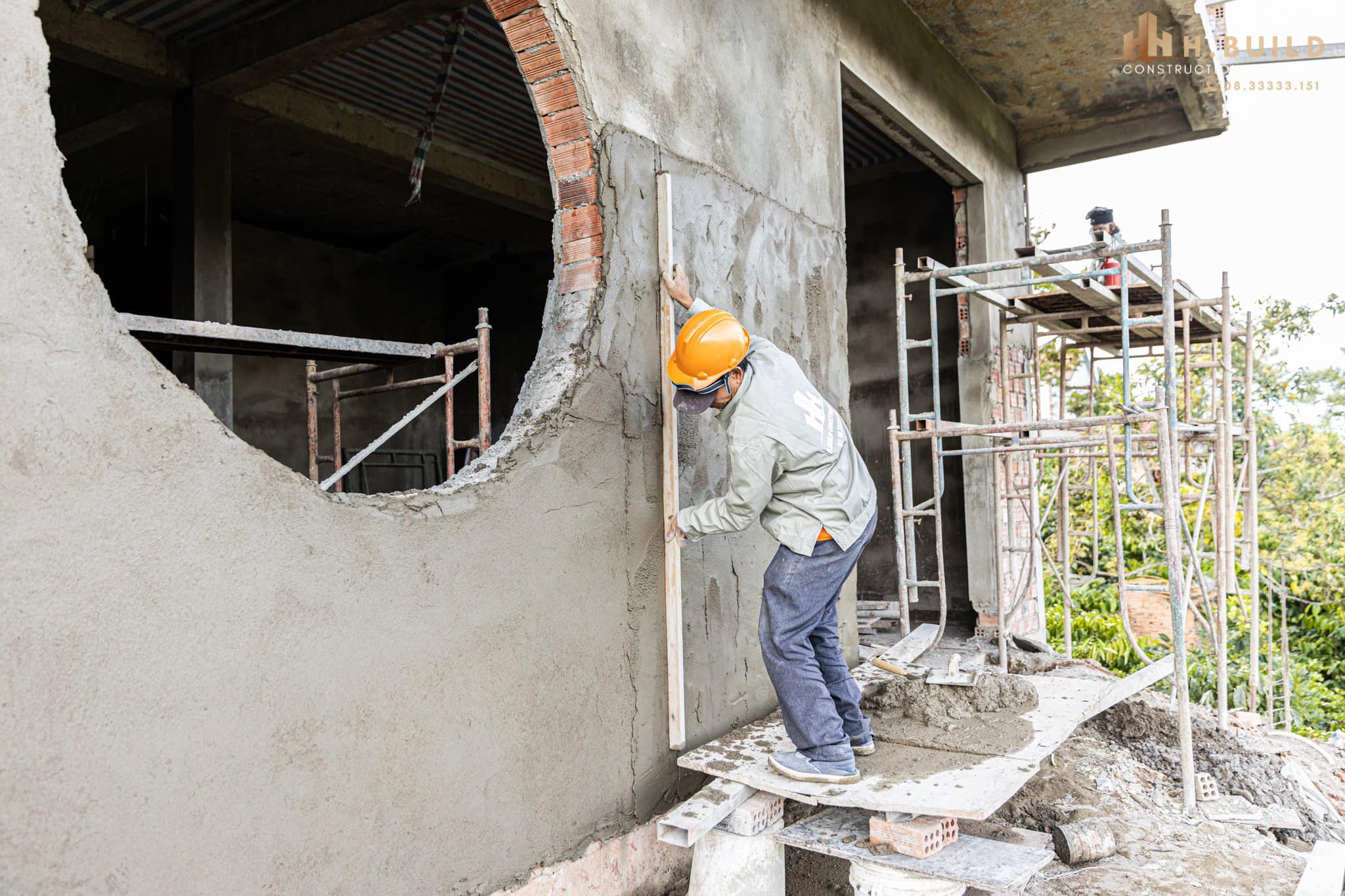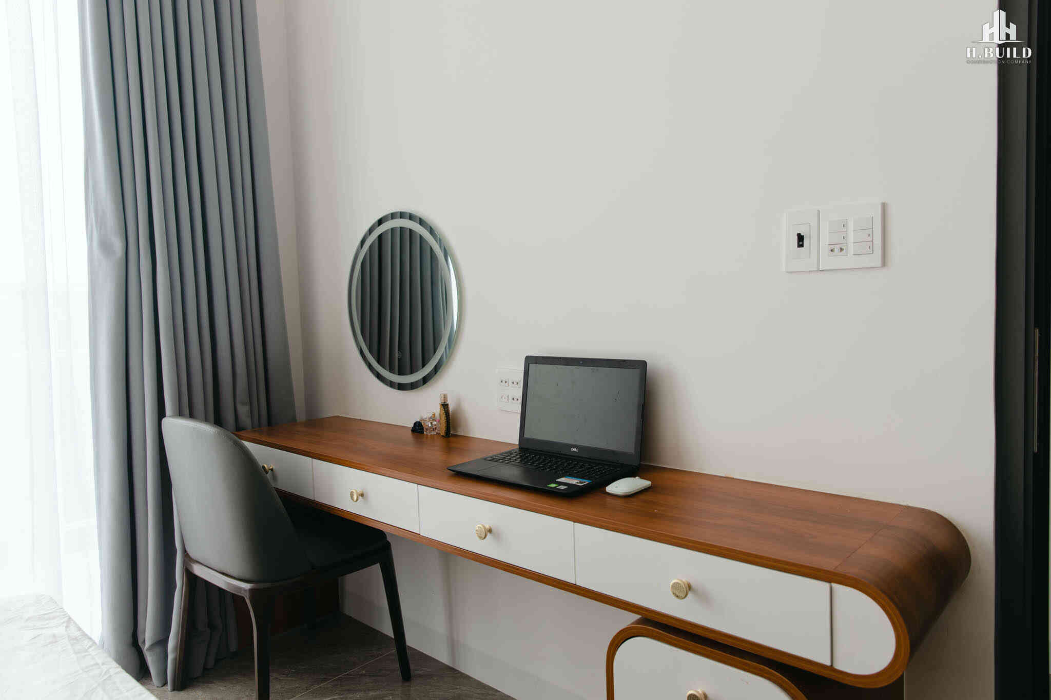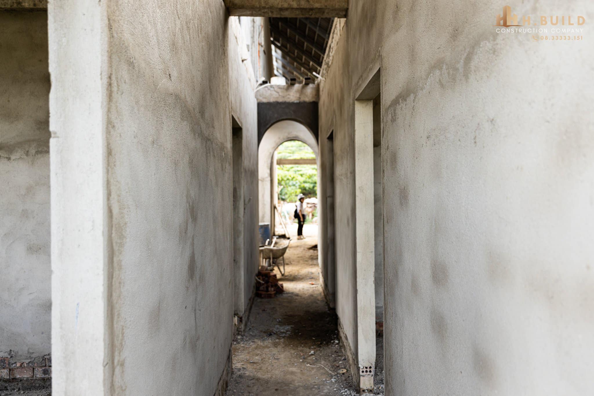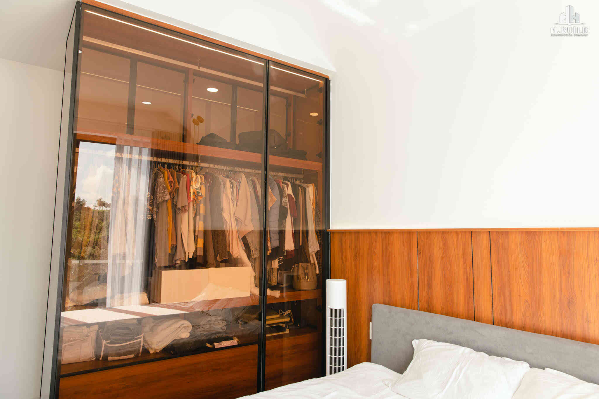 Bên trong là một không gian “Home Resort” đúng nghĩa. Trần thông tầng cao vút, mảng tường hiệu ứng bê tông viền vàng kim loại và những vòm cong mềm mại tạo nên vẻ đẹp sang trọng nhưng đầy phóng khoáng.
