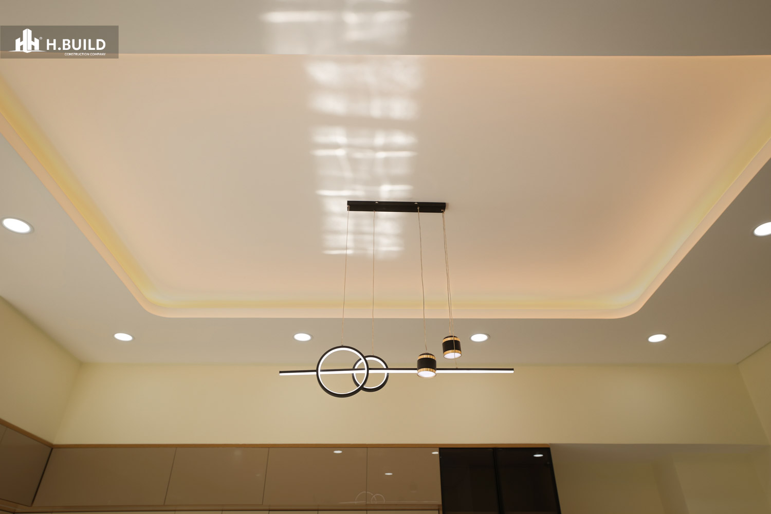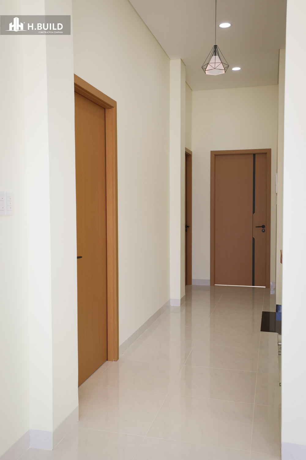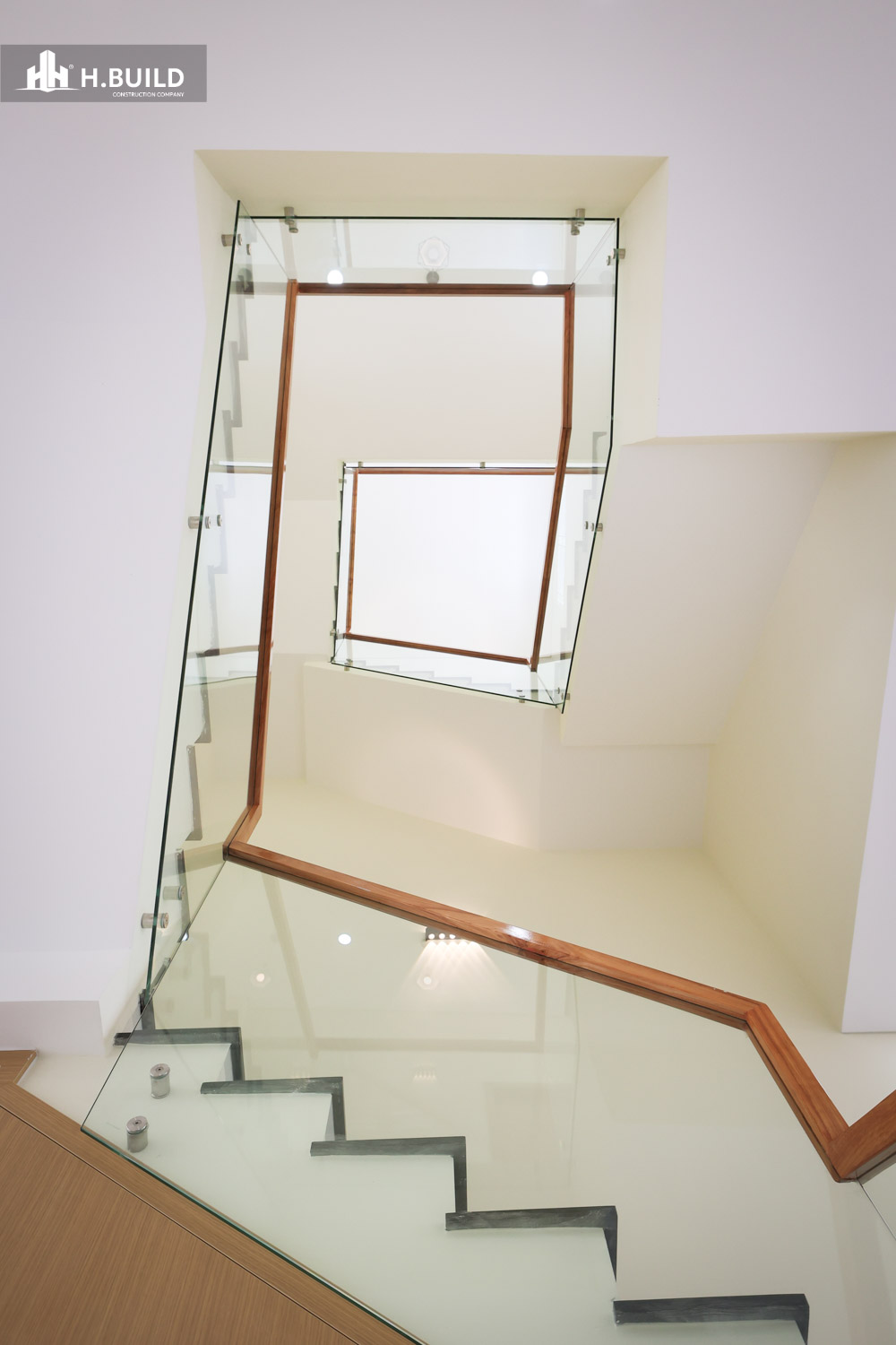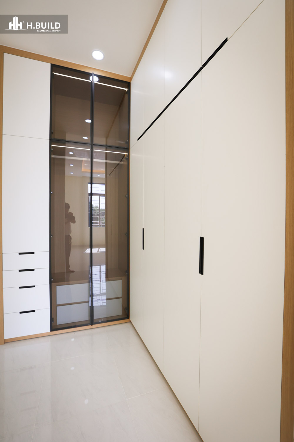 Các vật liệu như đá ốp tự nhiên, kính và kim loại được kết hợp trên nền màu trung tính, tạo nên một vẻ đẹp sang trọng, bền vững với thời gian.