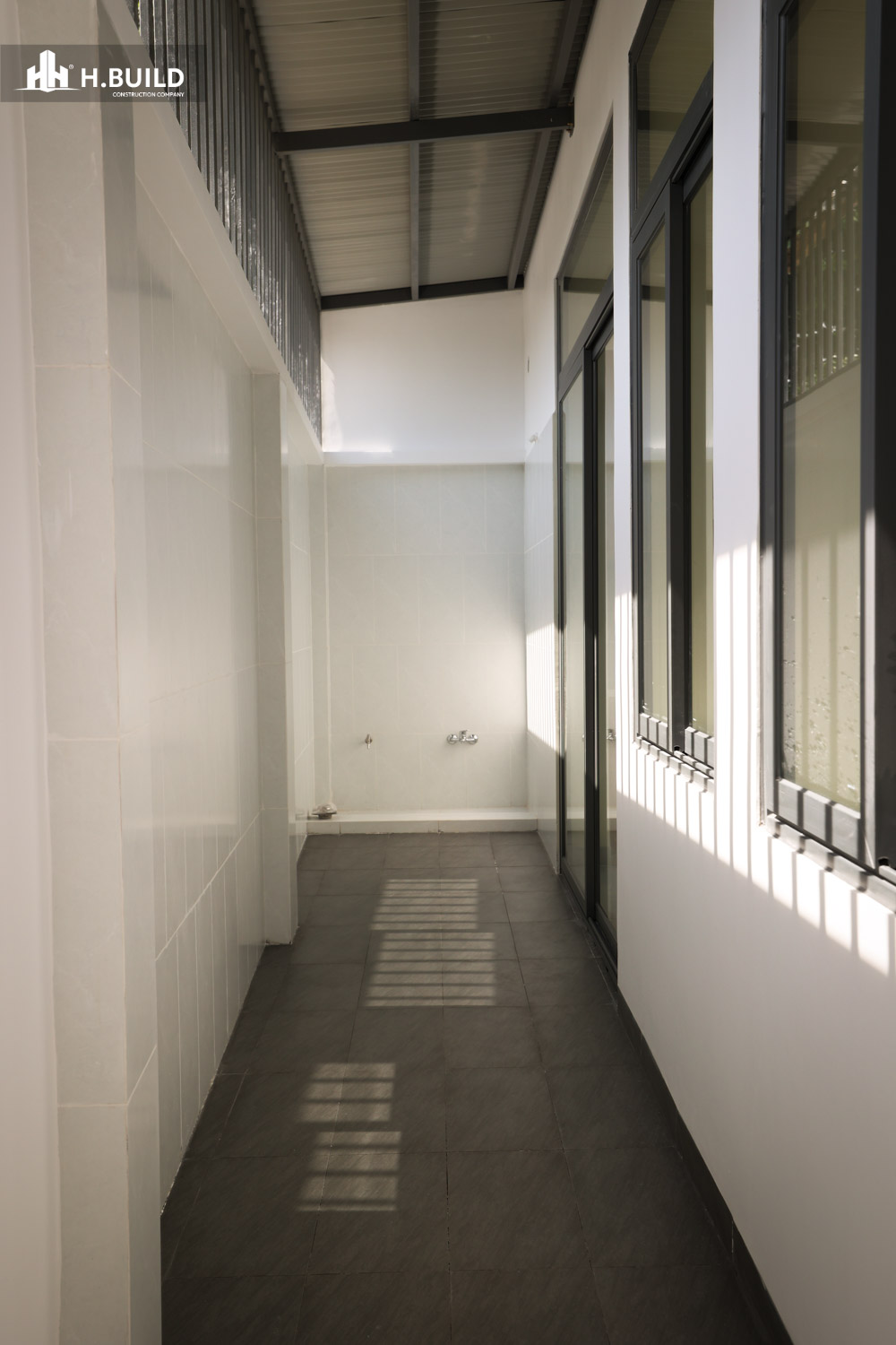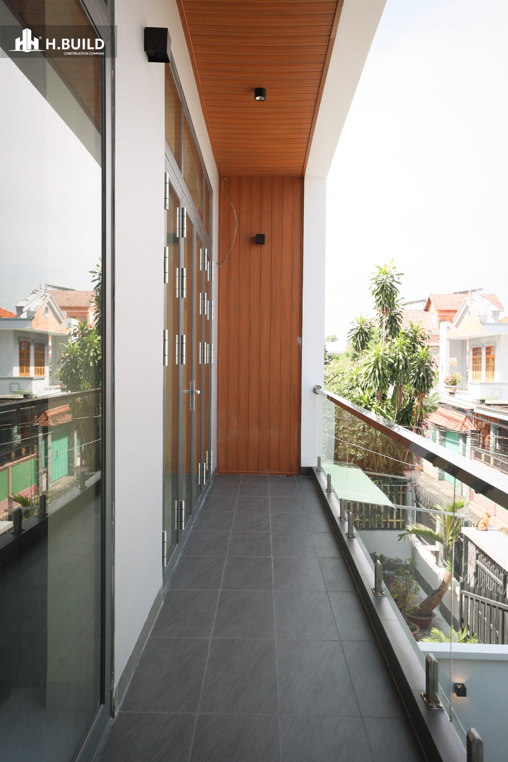 Thiết kế ban công lùi sâu và hệ lam che chắn là giải pháp thông minh, phù hợp với khí hậu nhiệt đới ở Biên Hòa, giúp nâng tầm chất lượng sống ngay cả trên một diện tích đất giới hạn.