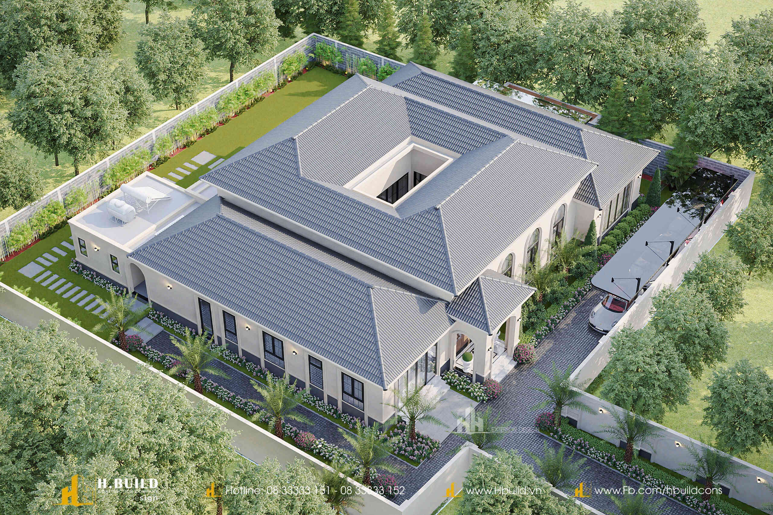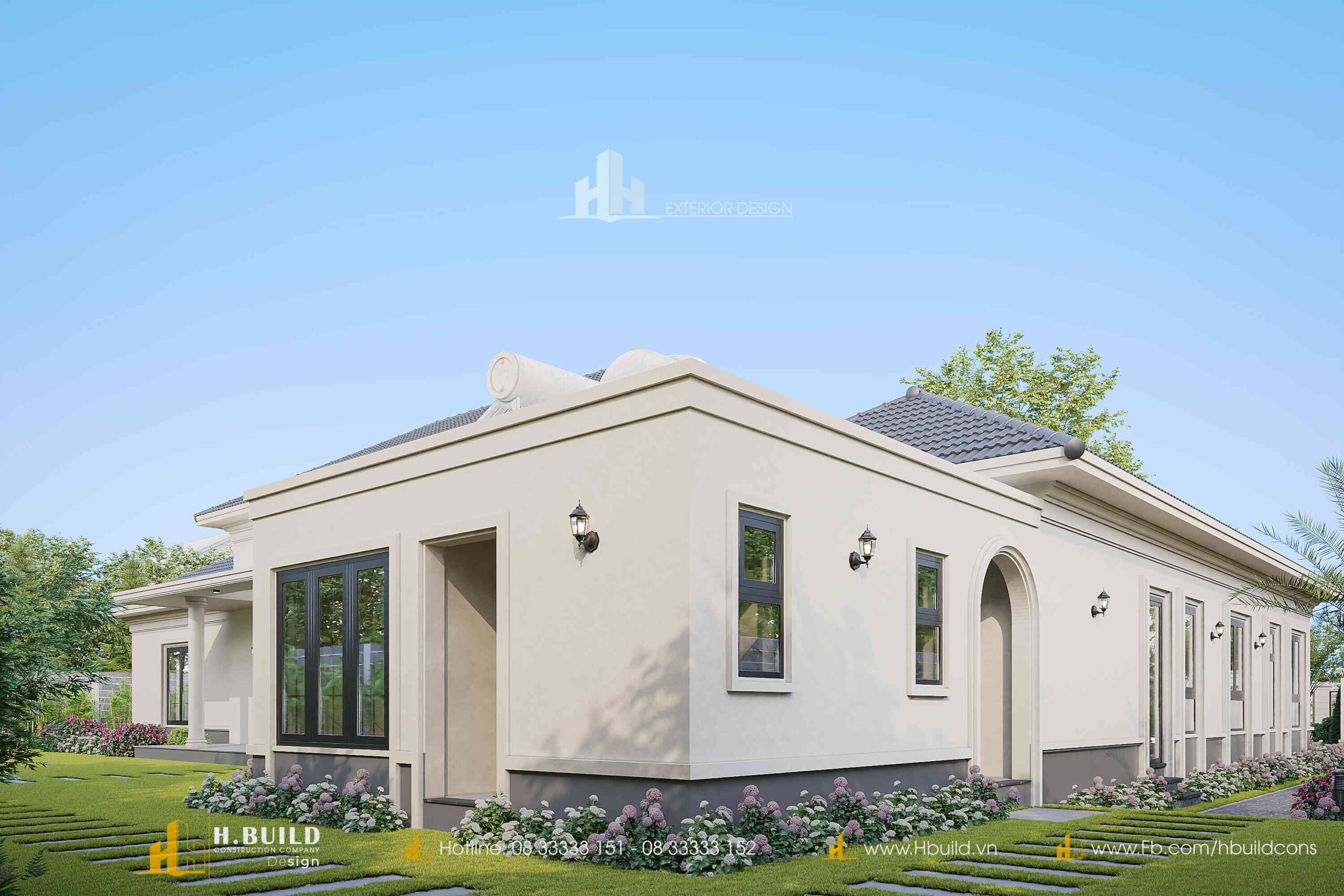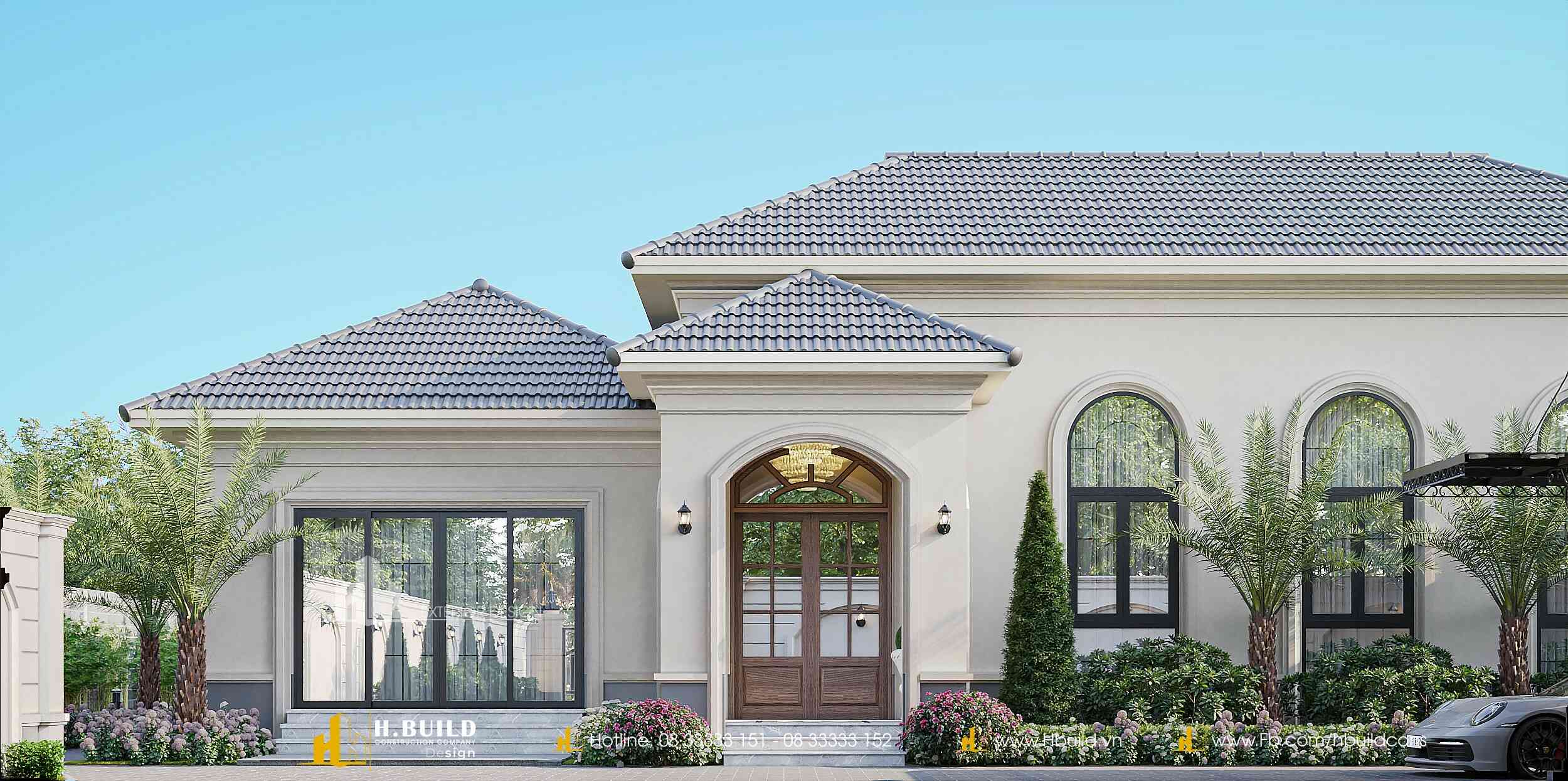 Thấu hiểu sâu sắc bài toán đó, H.Build đã cùng anh kiến tạo nên 𝐇’𝐬 𝐕𝐢𝐥𝐥𝐚 – một dinh thự vườn Tân cổ điển tráng lệ rộng 520m² giữa lòng Đắk Lắk. Vẻ đẹp của công trình đến từ sự bề thế, sang trọng với những thức cột, vòm cong và hệ phào chỉ tinh tế, được cân bằng bởi hệ mái Nhật giao nhau một cách hài hòa, vững chãi.