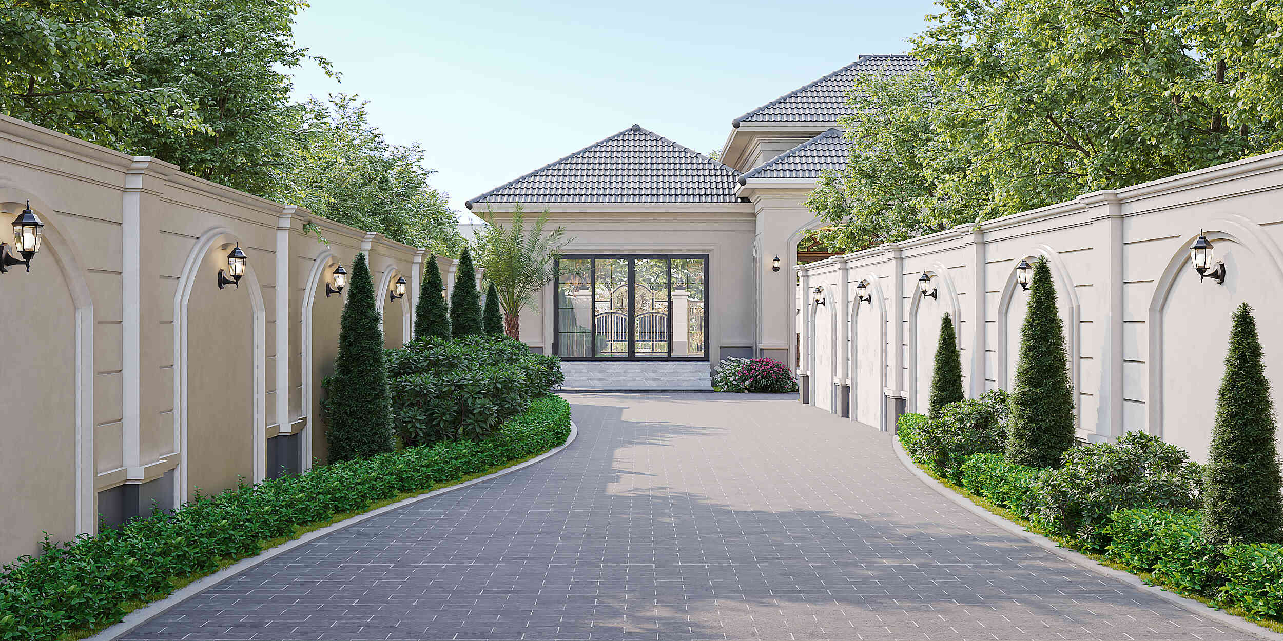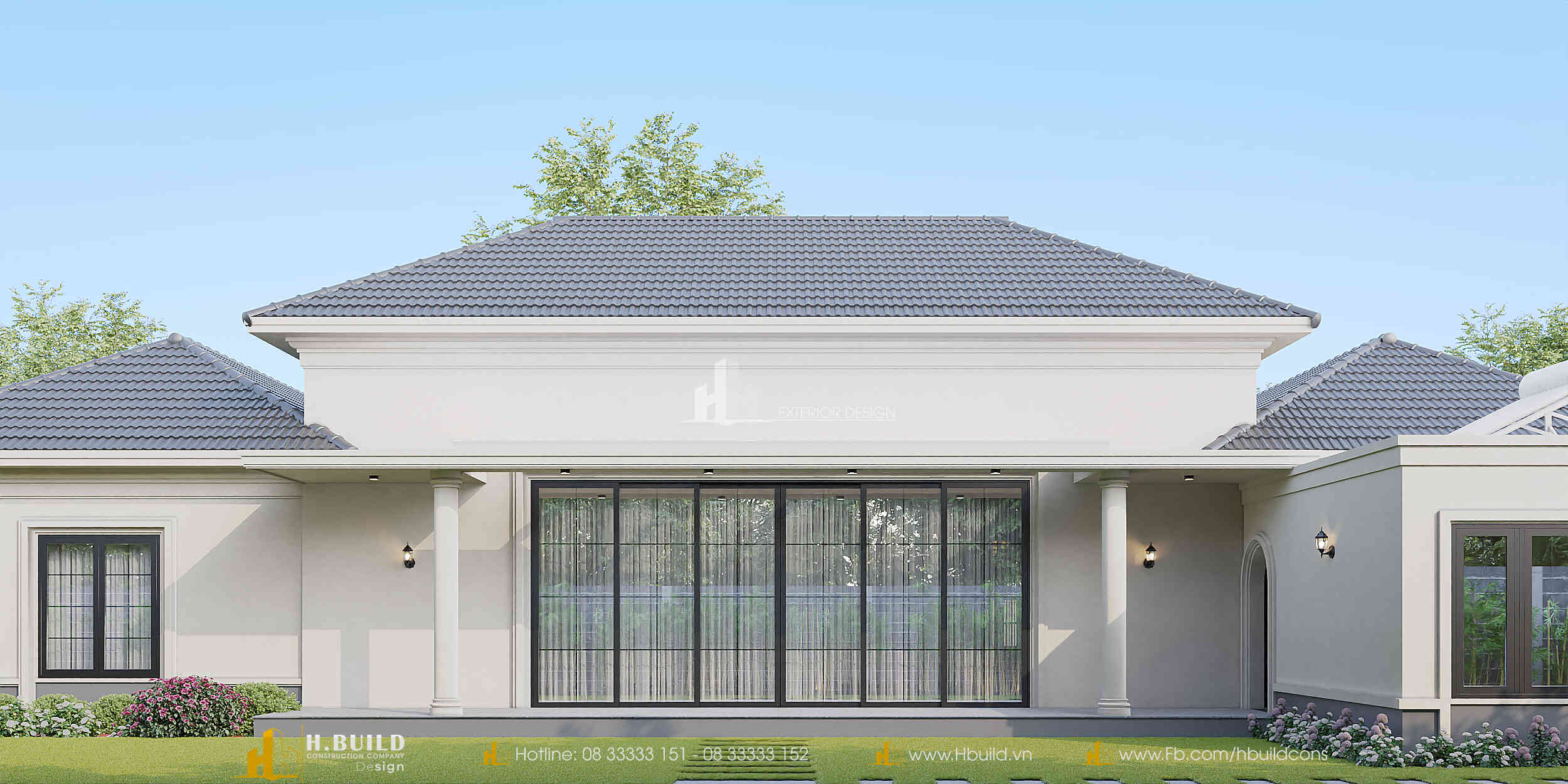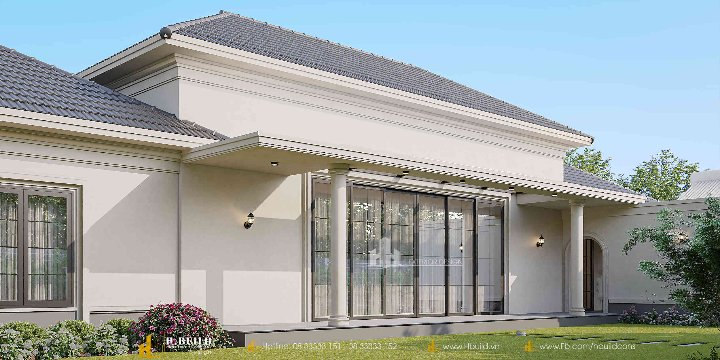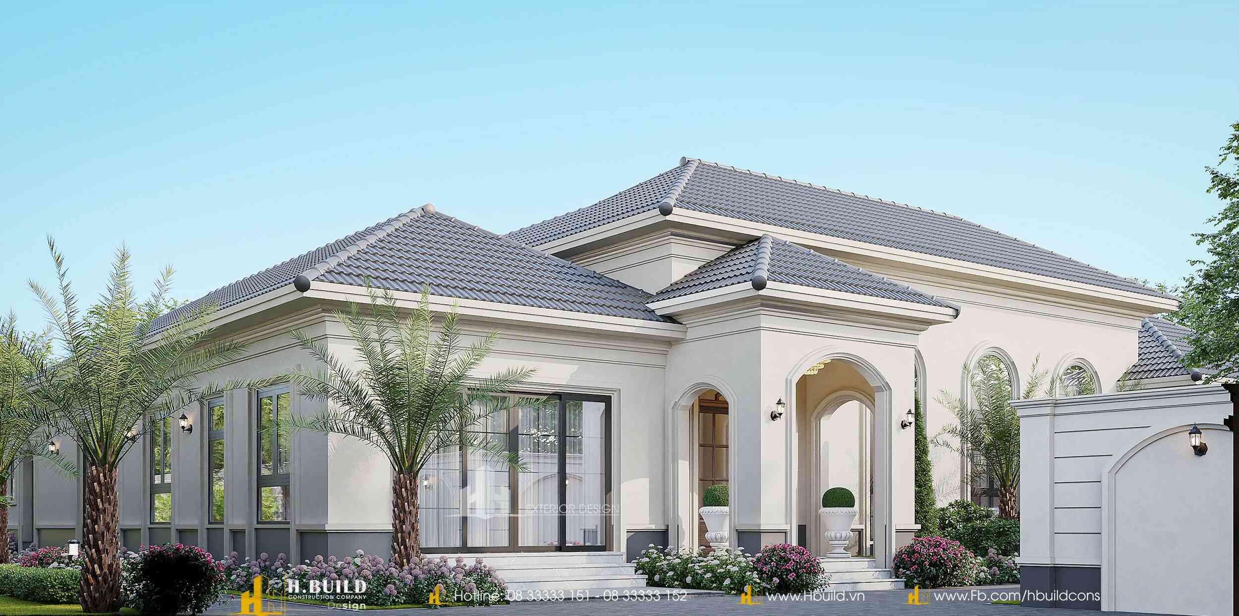 Thấu hiểu sâu sắc bài toán đó, H.Build đã cùng anh kiến tạo nên 𝐇’𝐬 𝐕𝐢𝐥𝐥𝐚 – một dinh thự vườn Tân cổ điển tráng lệ rộng 520m² giữa lòng Đắk Lắk. Vẻ đẹp của công trình đến từ sự bề thế, sang trọng với những thức cột, vòm cong và hệ phào chỉ tinh tế, được cân bằng bởi hệ mái Nhật giao nhau một cách hài hòa, vững chãi.
