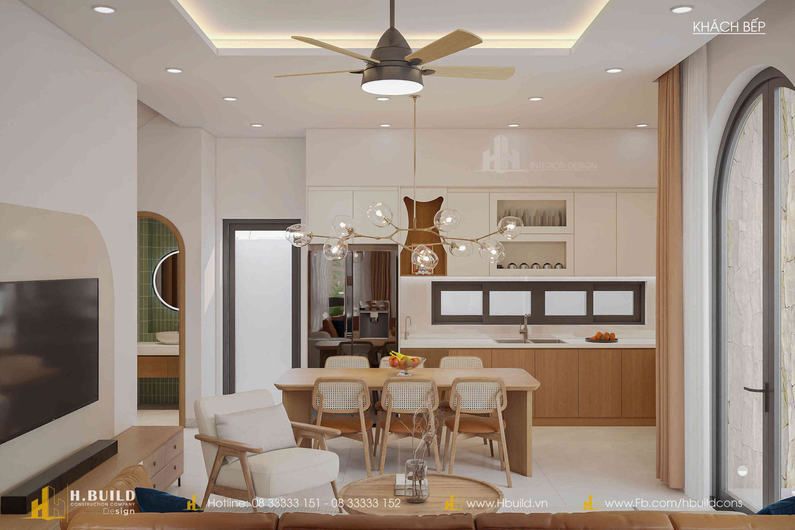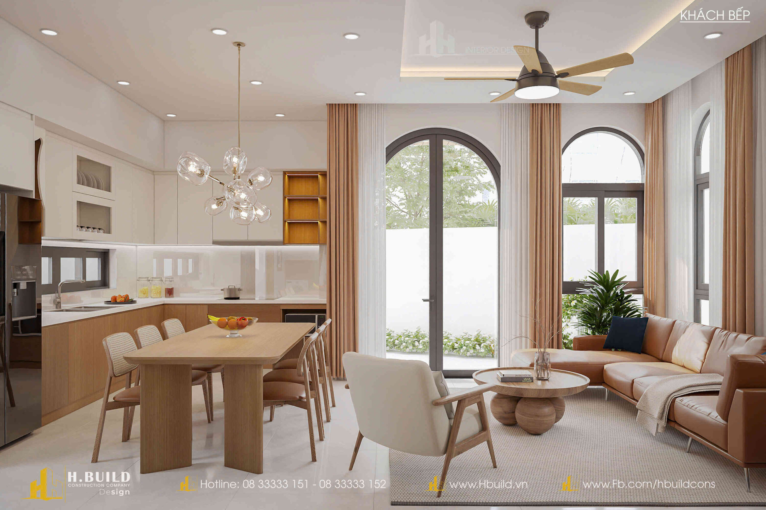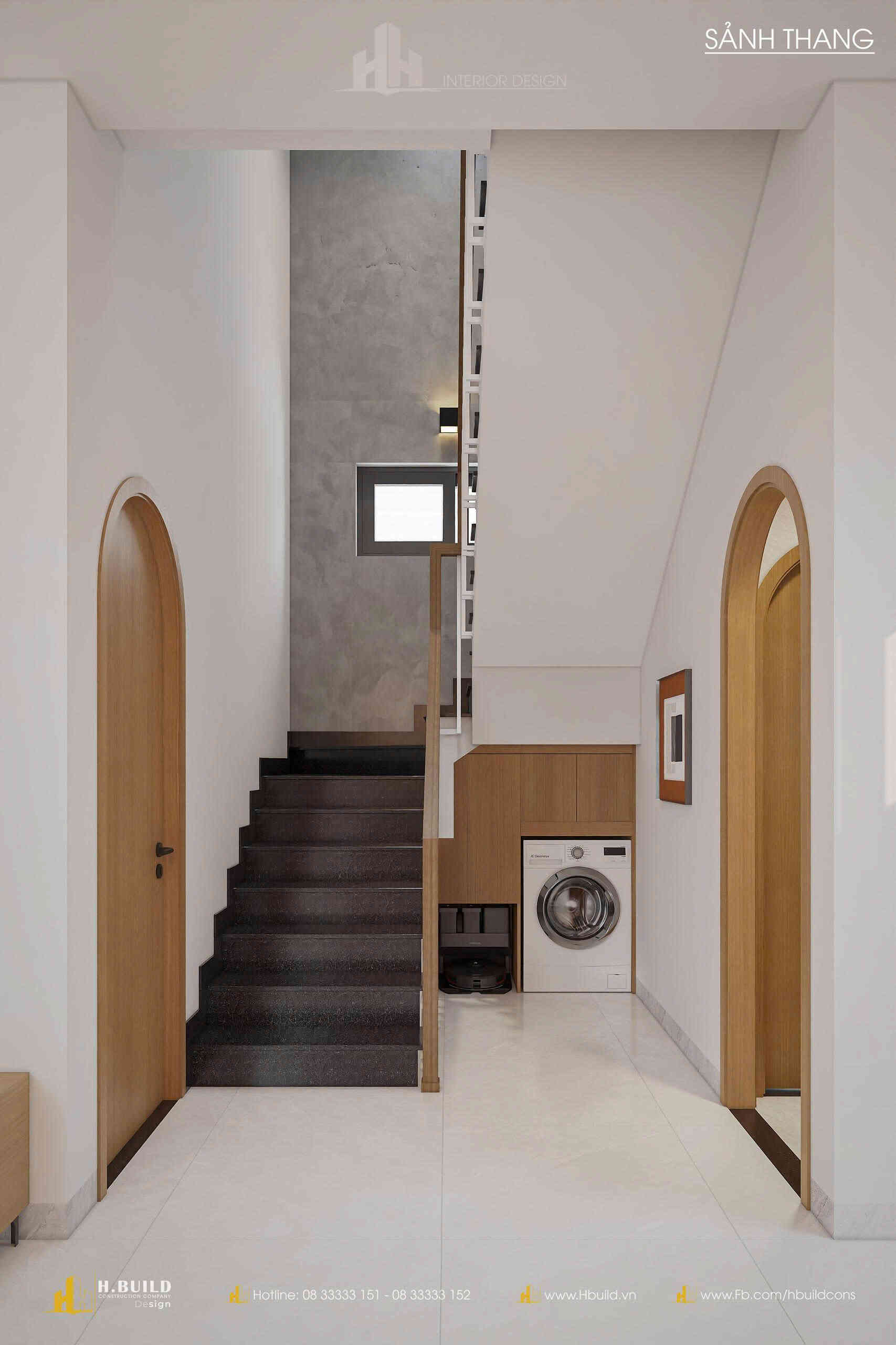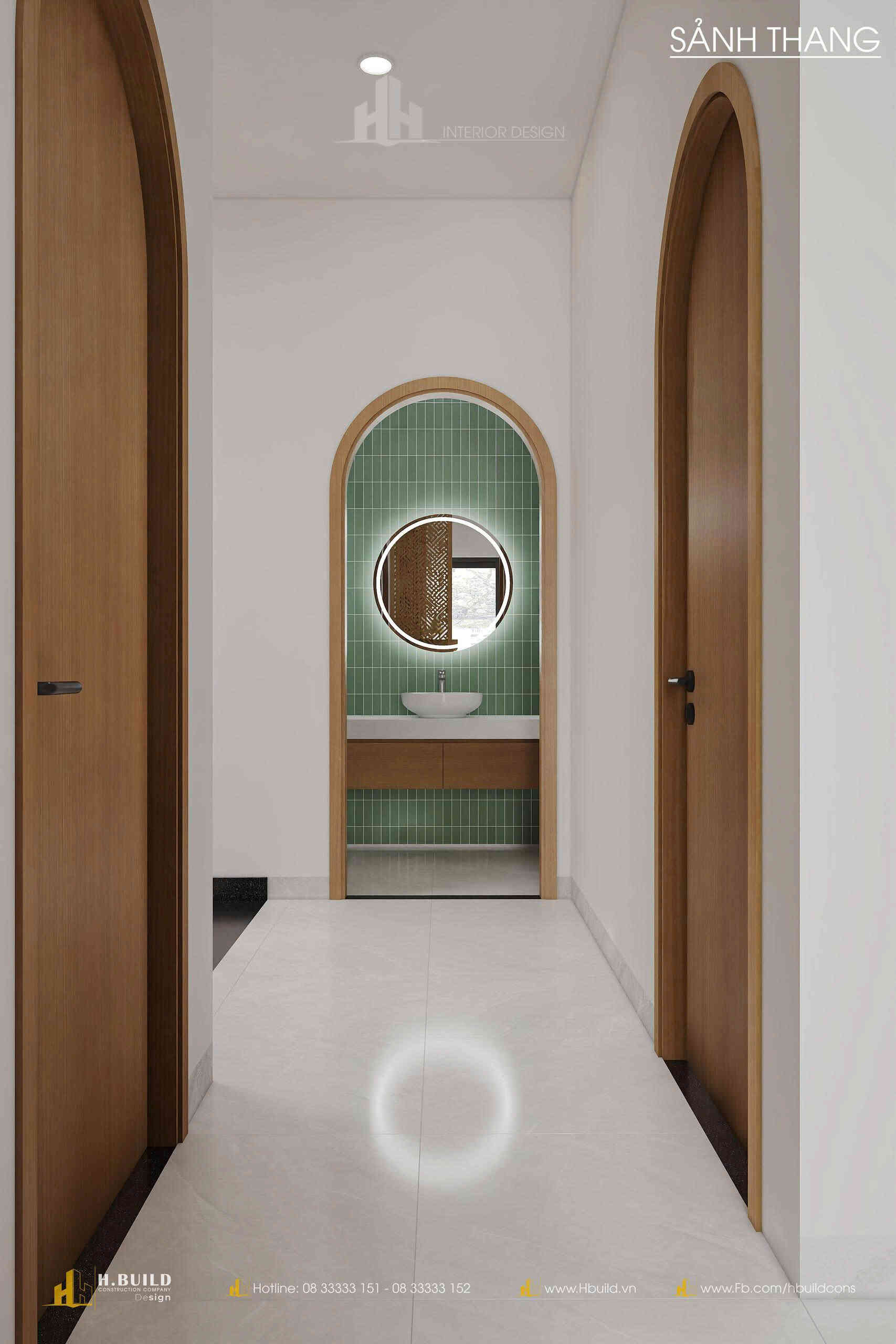 H.Build đã mang đến một thiết kế giao thoa đầy thú vị: hình dáng mái dốc cao của phong cách Farmhouse, nét duyên dáng của cửa vòm Indochine và đặc biệt là các mảng tường lớn bằng gạch bông gió.