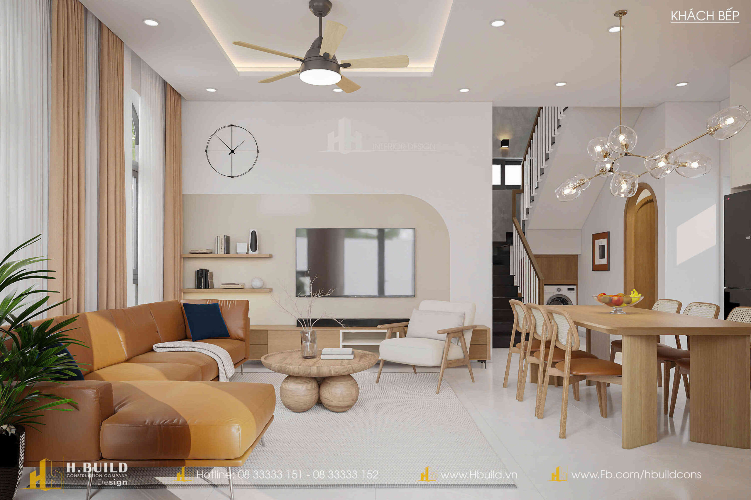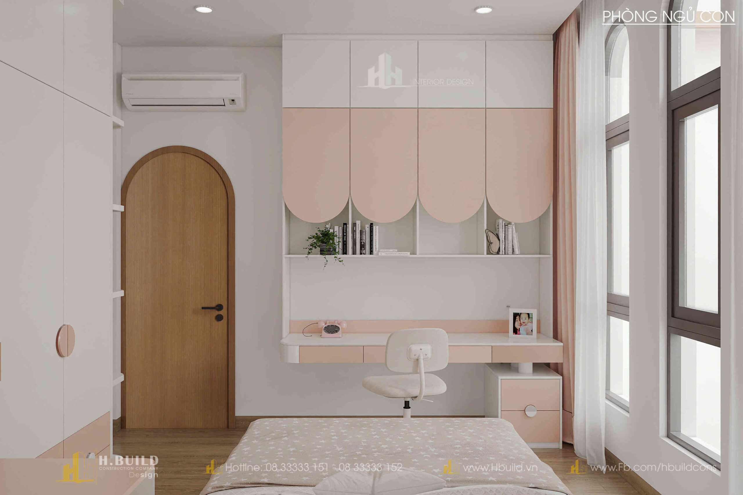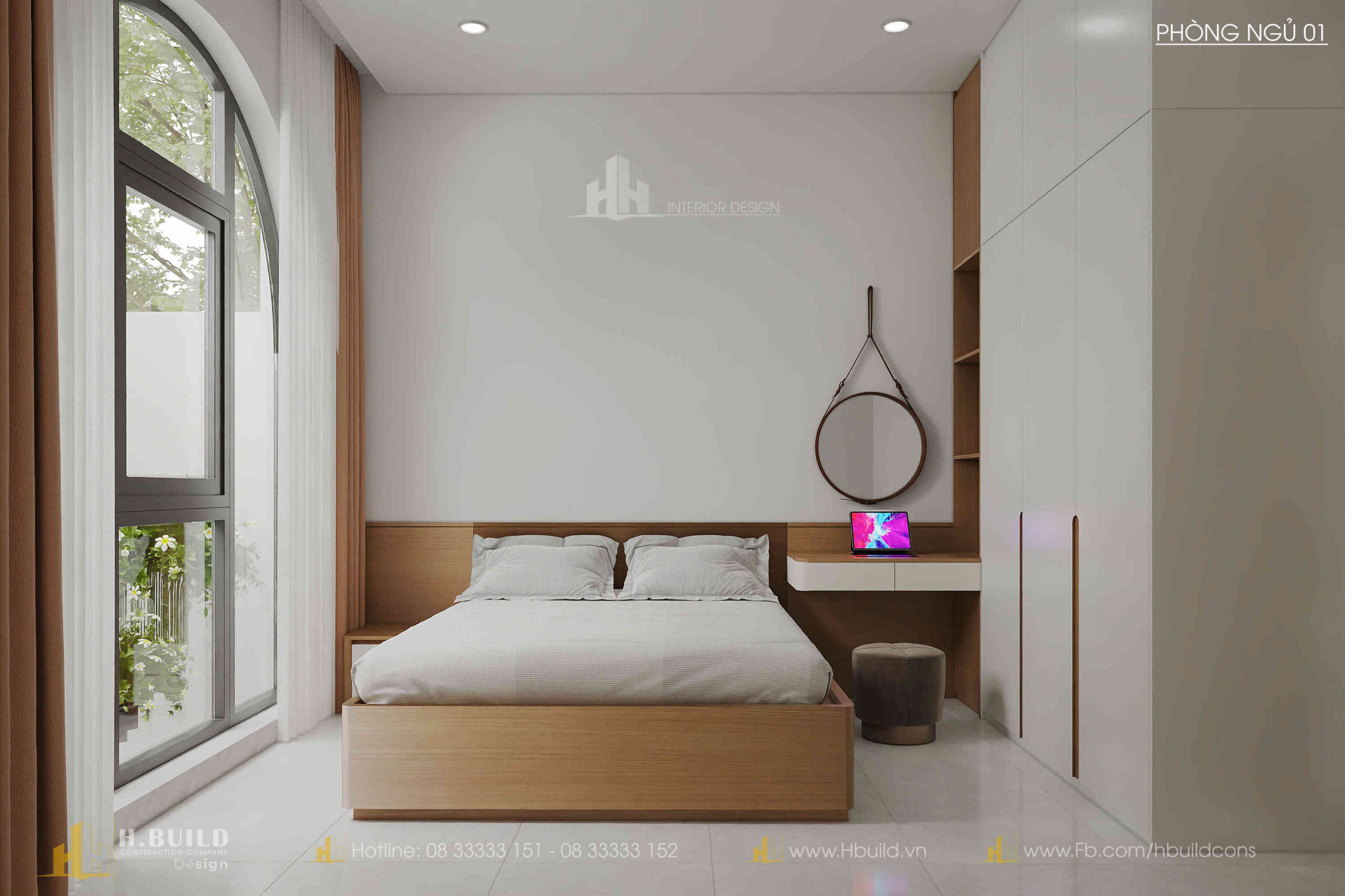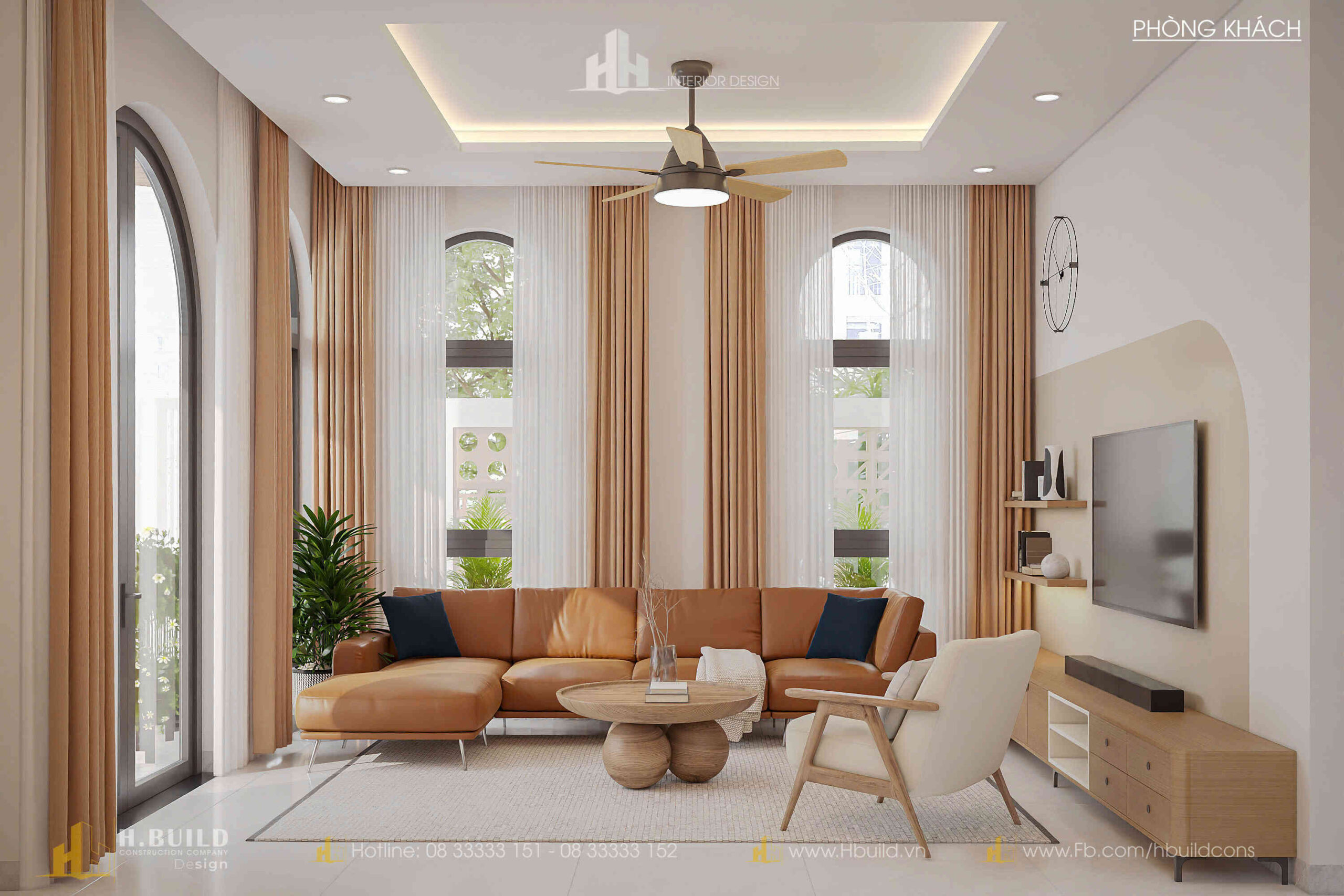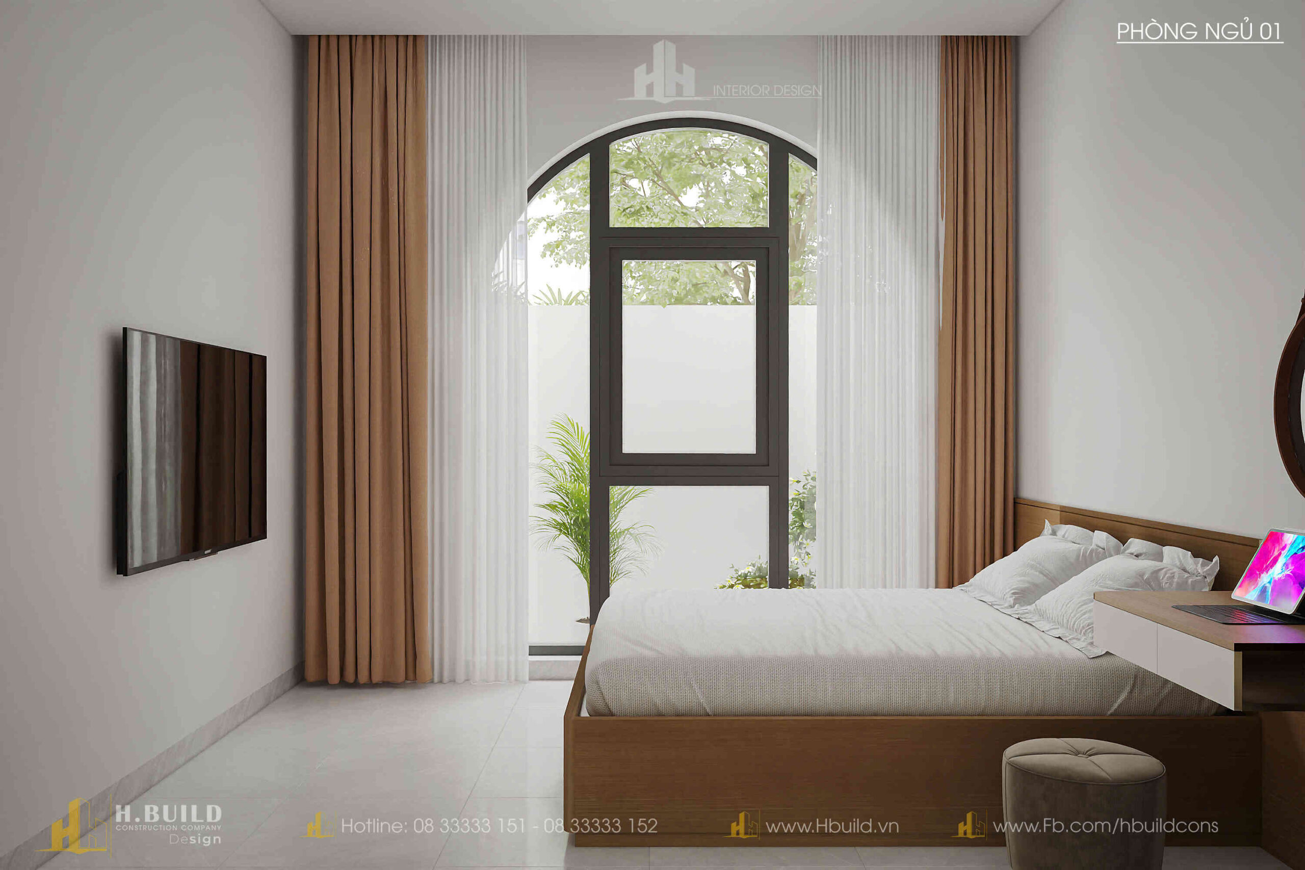 H.Build đã mang đến một thiết kế giao thoa đầy thú vị: hình dáng mái dốc cao của phong cách Farmhouse, nét duyên dáng của cửa vòm Indochine và đặc biệt là các mảng tường lớn bằng gạch bông gió.